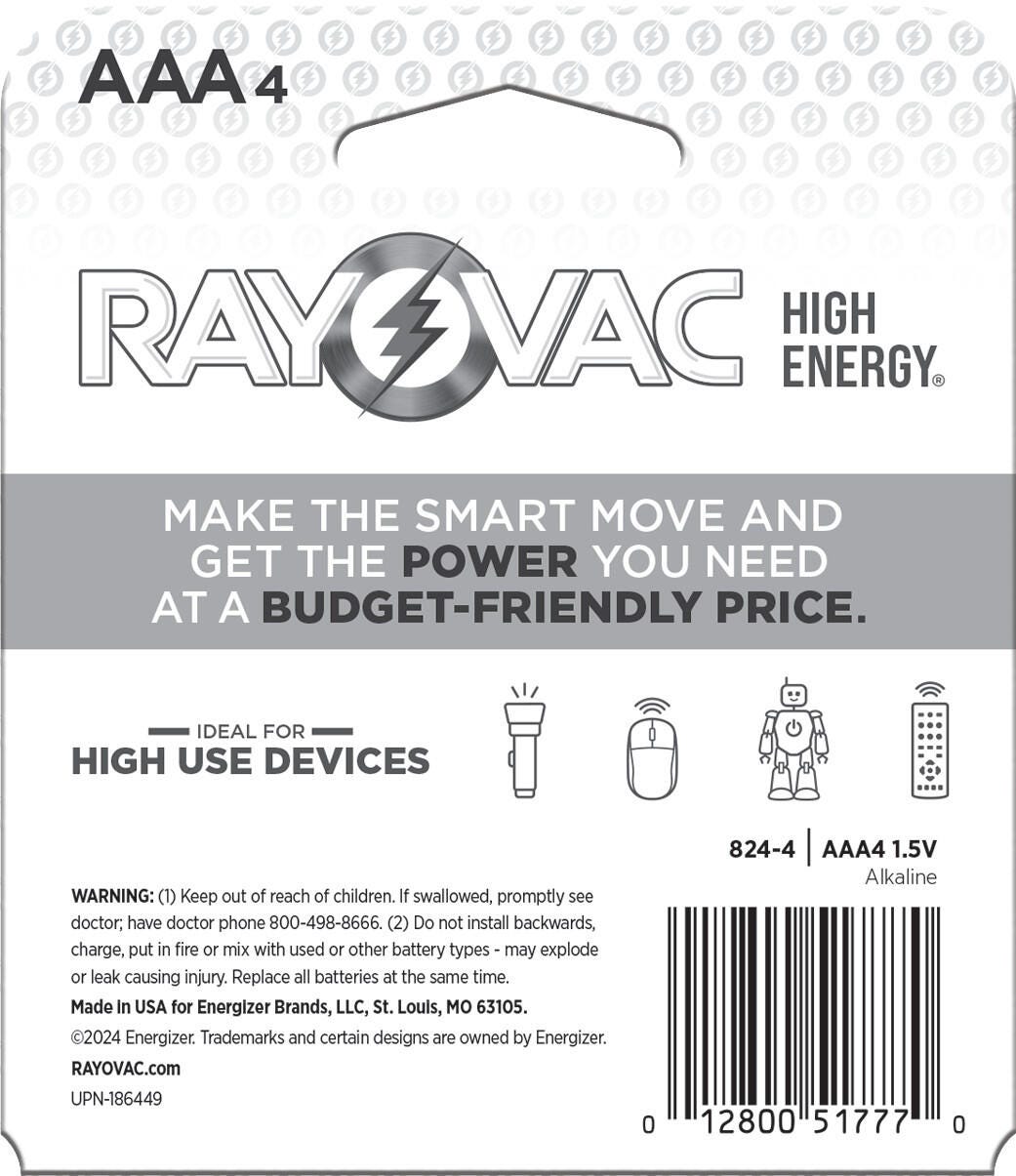 Power your household with RAYOVAC® High Energy AAA Alkaline Batteries. Engineered for long-lasting performance, these RAYOVAC® AAA batteries are ideal for high-use devices in your home, including flashlights, wireless mice, remotes, and smart home devices. RAYOVAC® rigorously tests its batteries to ensure they do what they say they'll do—plain and simple. These AAA alkaline batteries are backed by a 10 Year Power Guarantee, designed to last up to 10 years in storage. Each AAA battery is made for dependable performance.