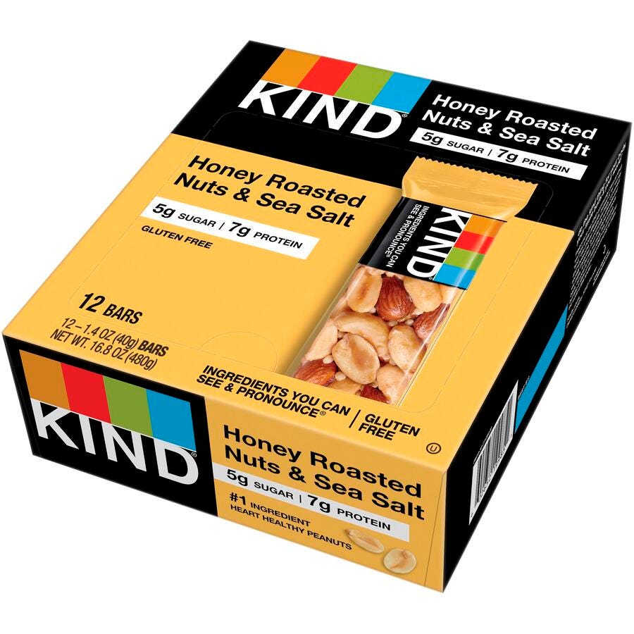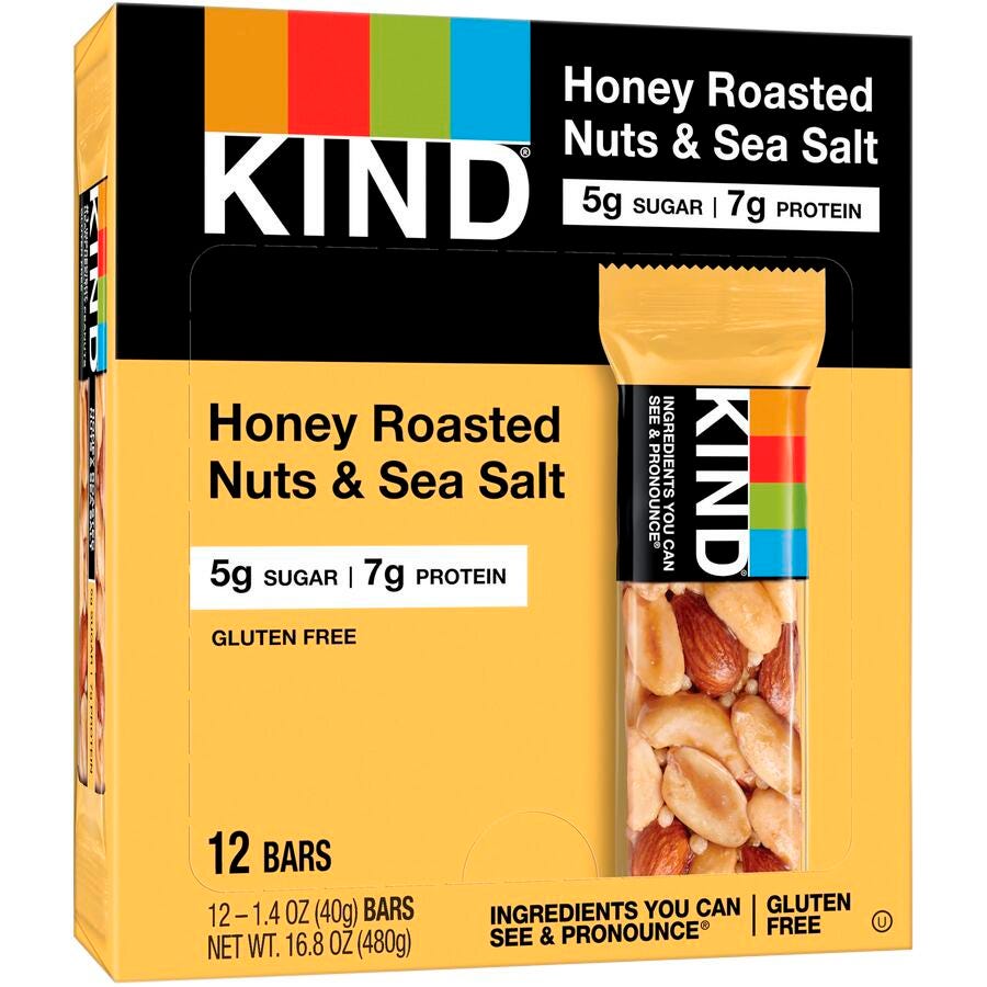 KIND Honey Roasted Nuts & Sea Salt Bars, 1.4 Ounce, Box of 12