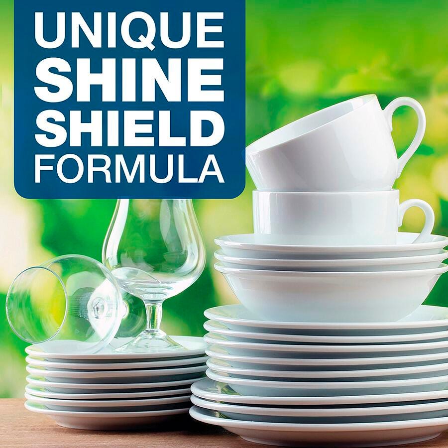 Cascade dishwasher detergent with Shine Shield formula rinses away residue, leaving dishes sparkling and clean. This automatic dishwasher detergent cleans so thoroughly that virtually nothing is left behind but pure clean, pure shine. Detergent contains no phosphates.