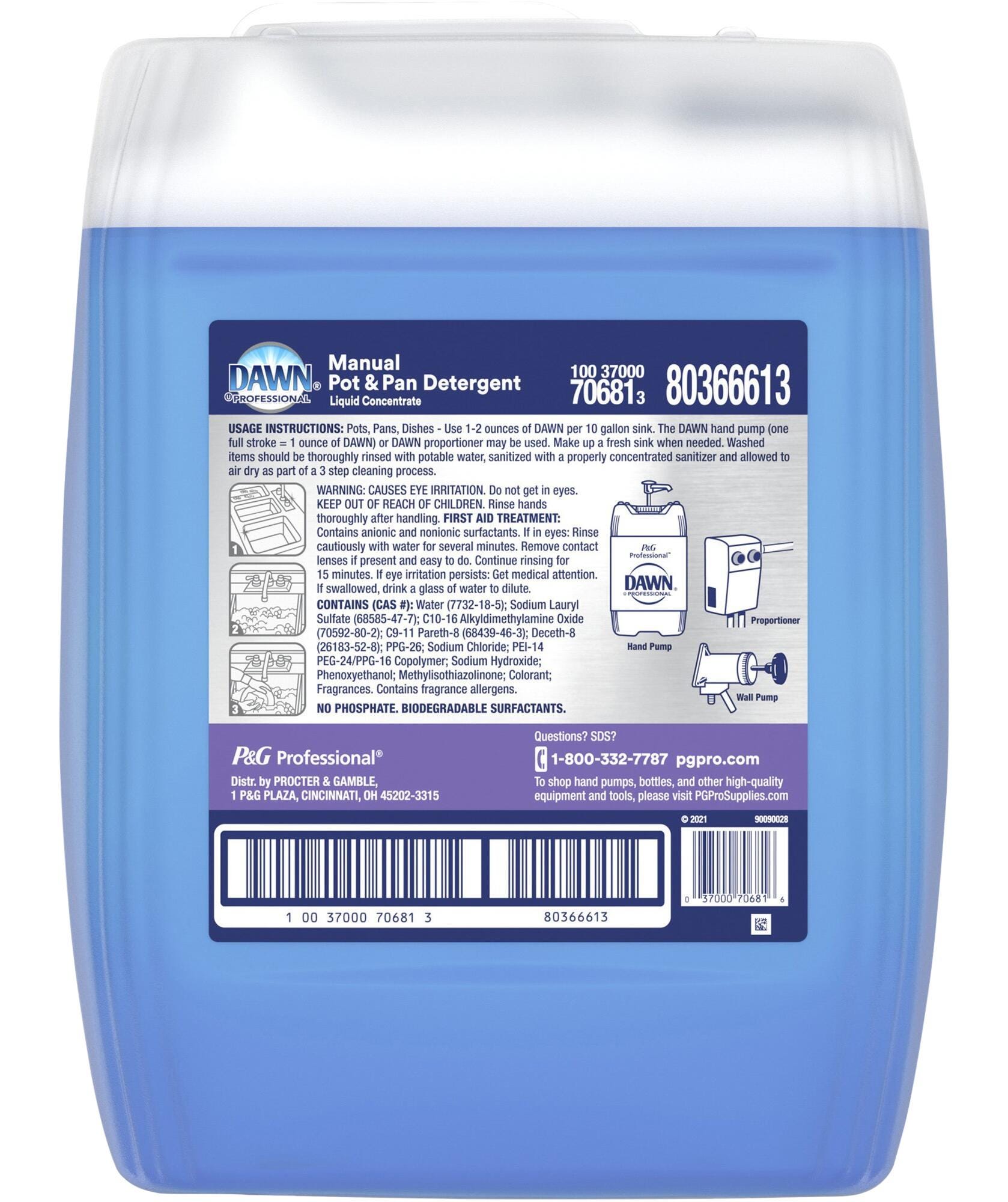 Dawn Manual Pot & Pan Detergent, Liquid, 5-Gallon, Translucent Blue