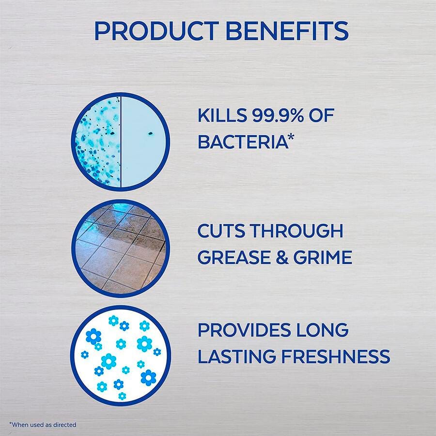 Help keep a healthier environment from top to bottom with this multisurface cleaner. Its powerful, versatile design can be applied directly on stains for spot cleaning, or diluted in water for use on large surfaces like floors. The advanced formula kills 99.9 percent of viruses and bacteria, cuts through tough grease and eliminates odor-causing bacteria even when diluted for powerful cleaning results. Multisurface cleaner is designed for use on hard, nonporous surfaces in the kitchen, bathroom and more.Features