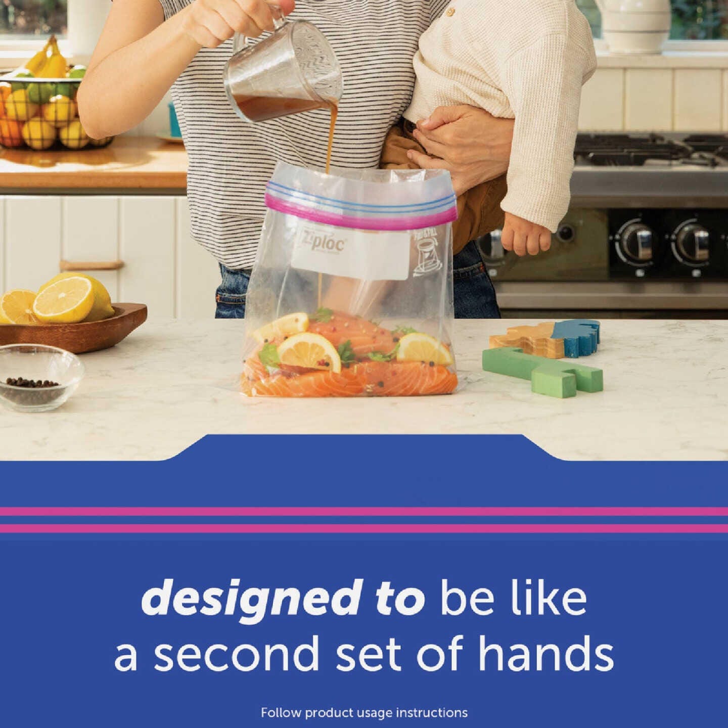 These Gallon Storage Bags from Ziploc keep leftovers fresh and make cleanup easy! Their Stay Open design features a wide bottom that helps the bag stand up and a top that easily folds over to stay open and keep the seal clean. Exclusive Grip 'n Seal technology and an extended tab make it easier to open and close, and offer a confident seal for lasting freshness. These gallon-size bags are microwave safe and BPA-free. This box contains 42 storage bags.Features