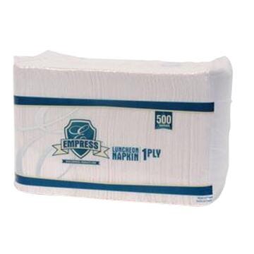 Empress 100% 1-ply Luncheon Napkins are an economical option perfect for foodservice applications such as high/light volume at fairs, festivals, or office lunch rooms. Poly-wrapped to keep the napkins clean and sanitary. Includes 12 packs of 500 napkins, for a total of 6,000 napkins.