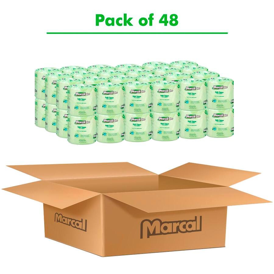 Marcal Pro 2-Ply Recycled Toilet Paper, 500 Sheets Per Roll, Pack of 48