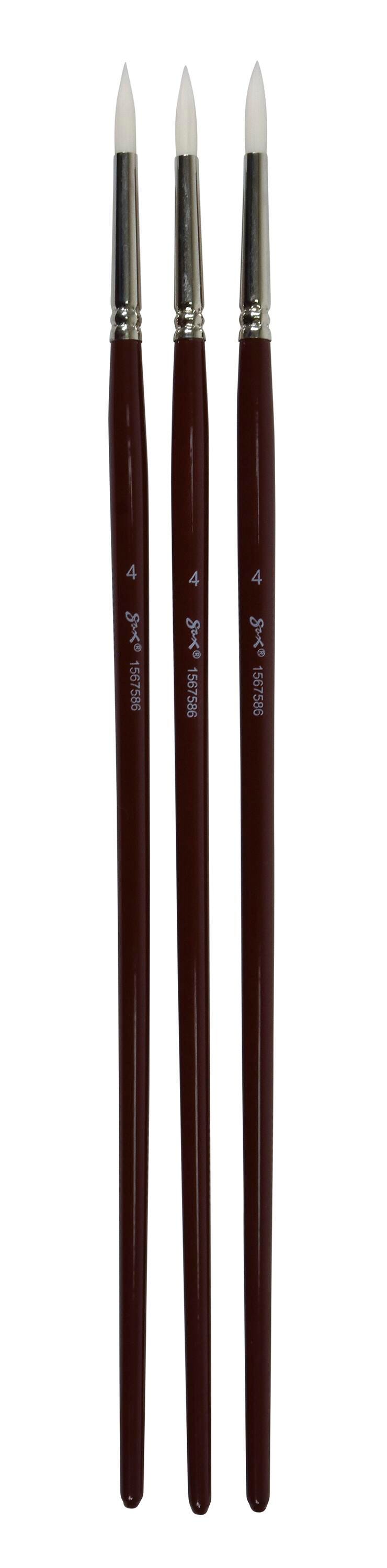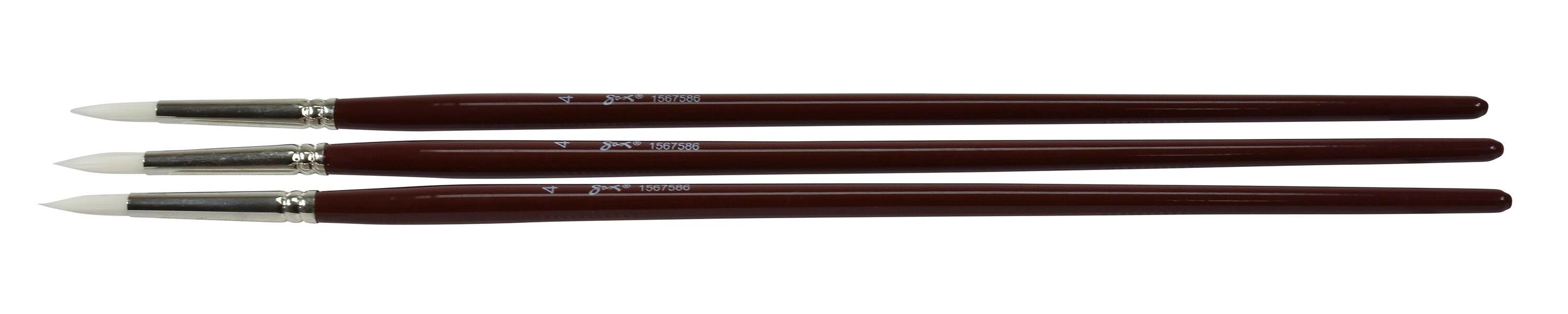 Sax Optimium White Taklon Brushes, Round Type, Long Handle, Size 4, Pack of 3