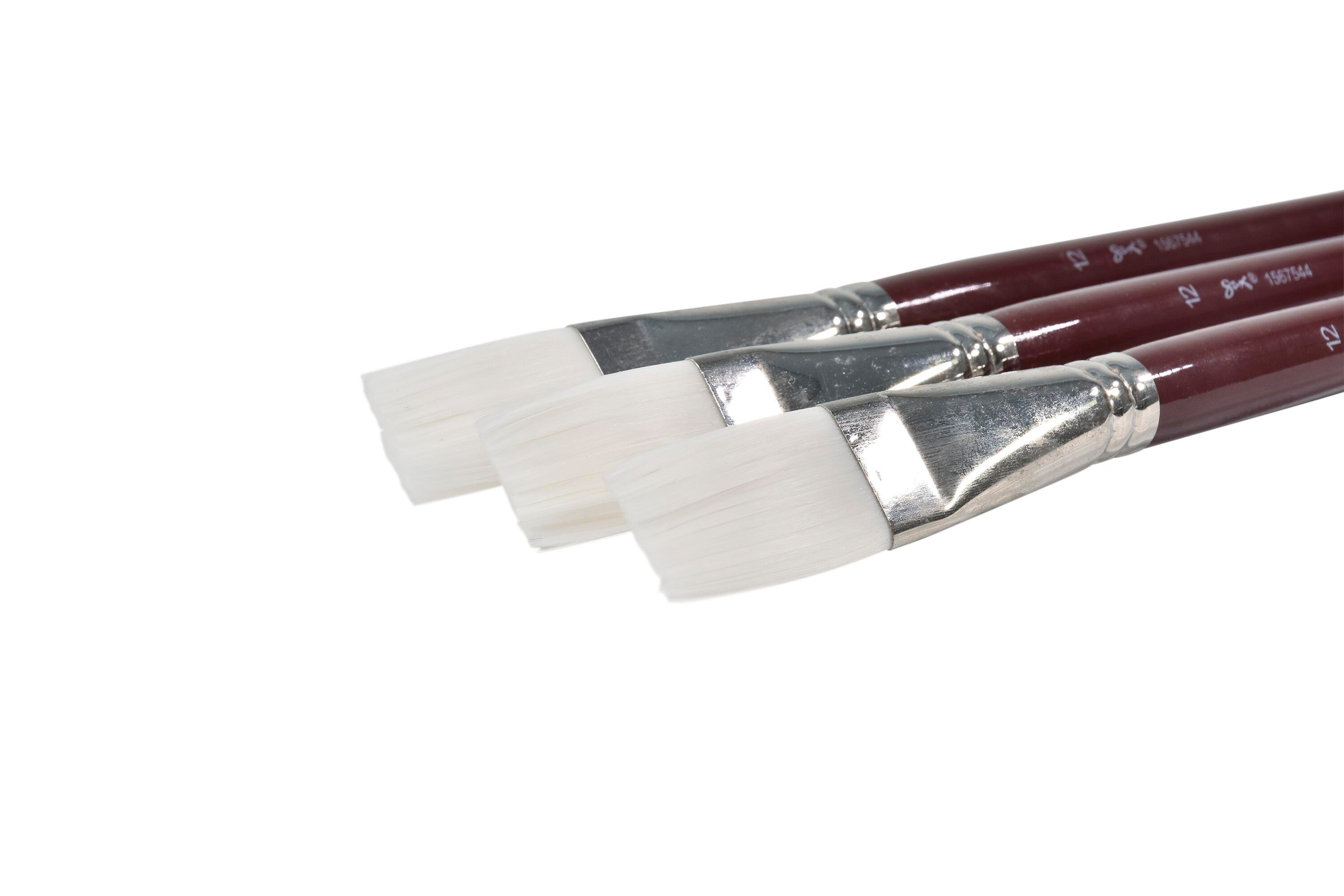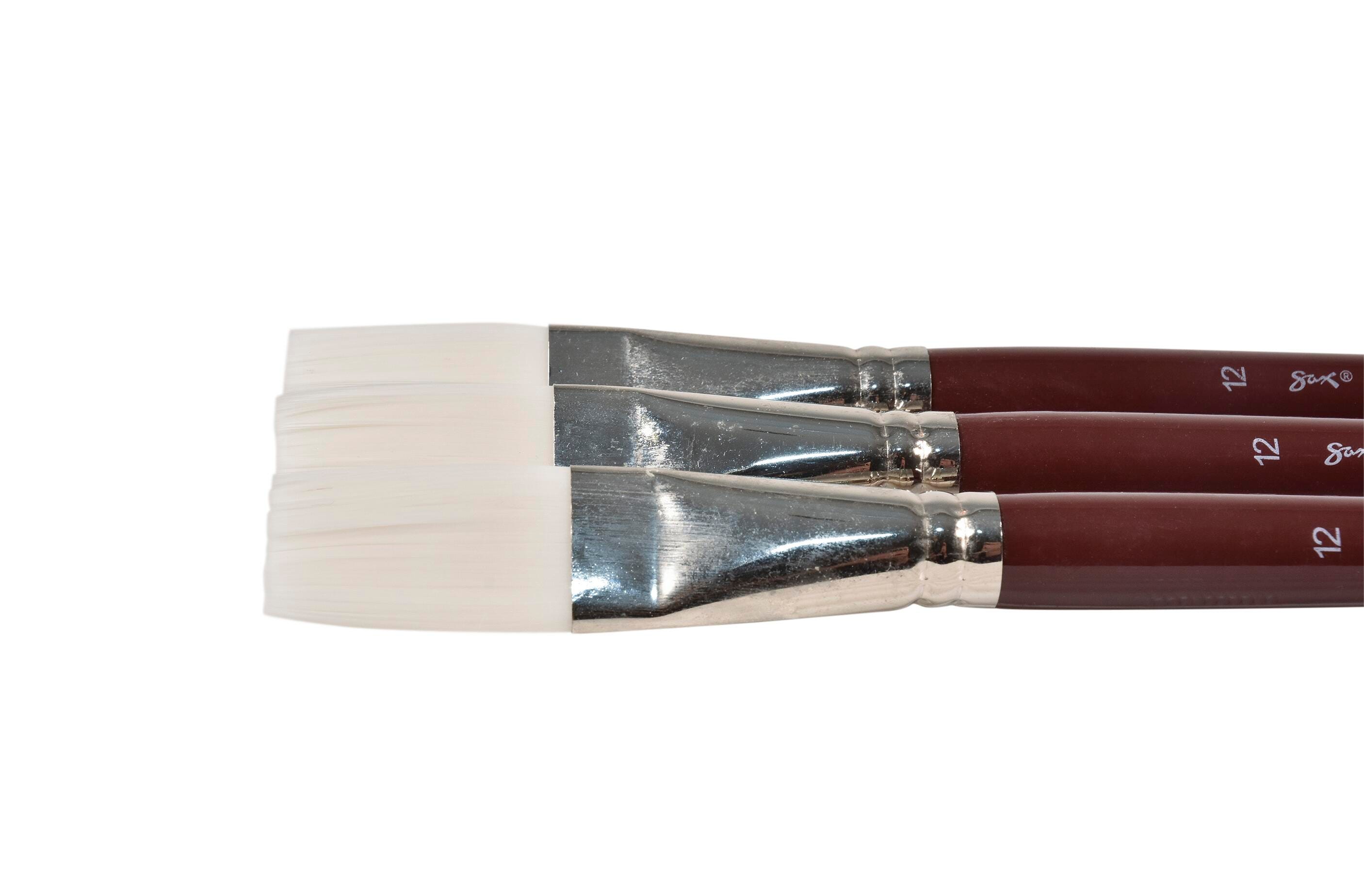 Sax Optimum White Synthetic Taklon Paint Brushes, Flat Type, Long Handle, Size 12, Set of 3