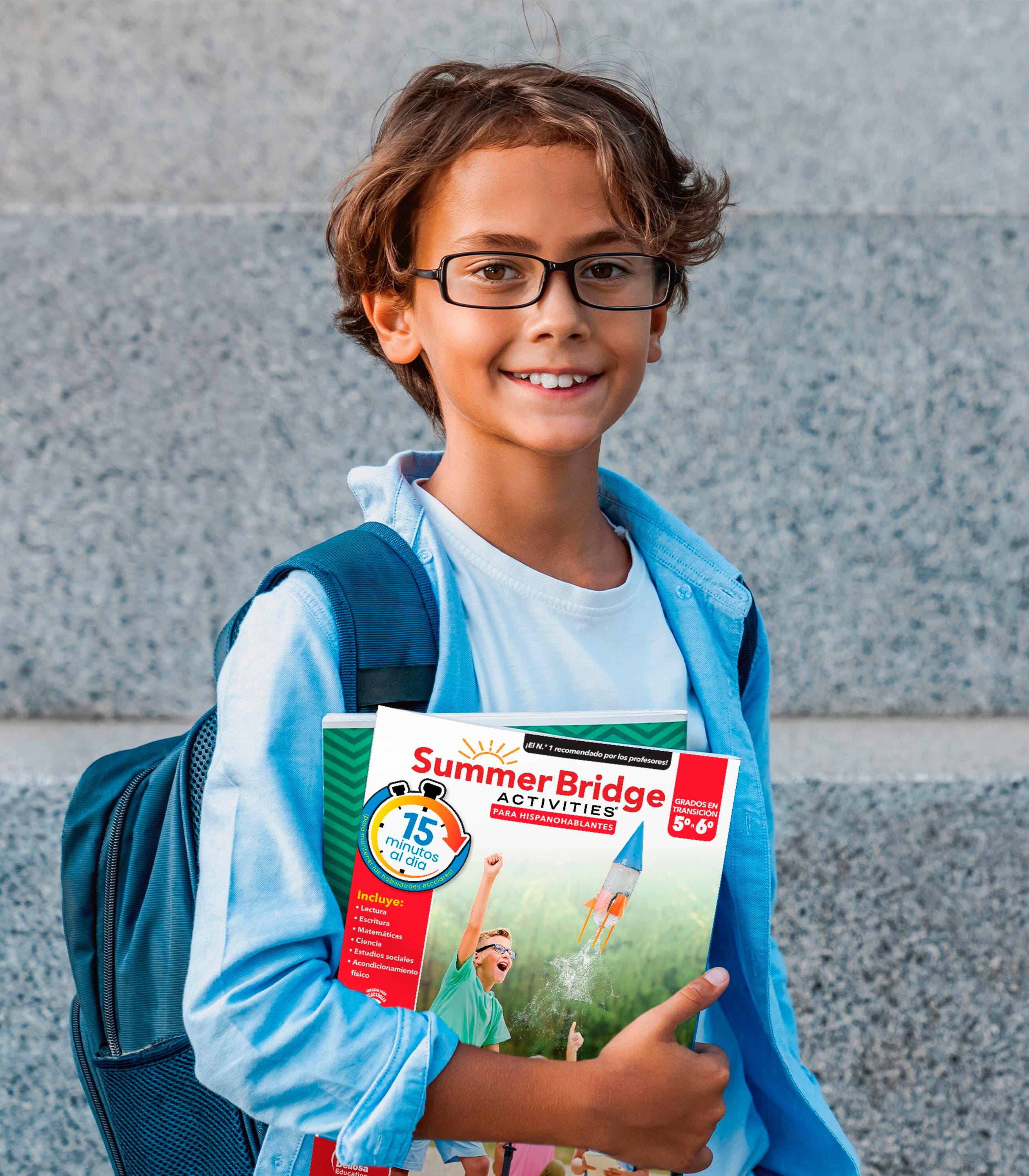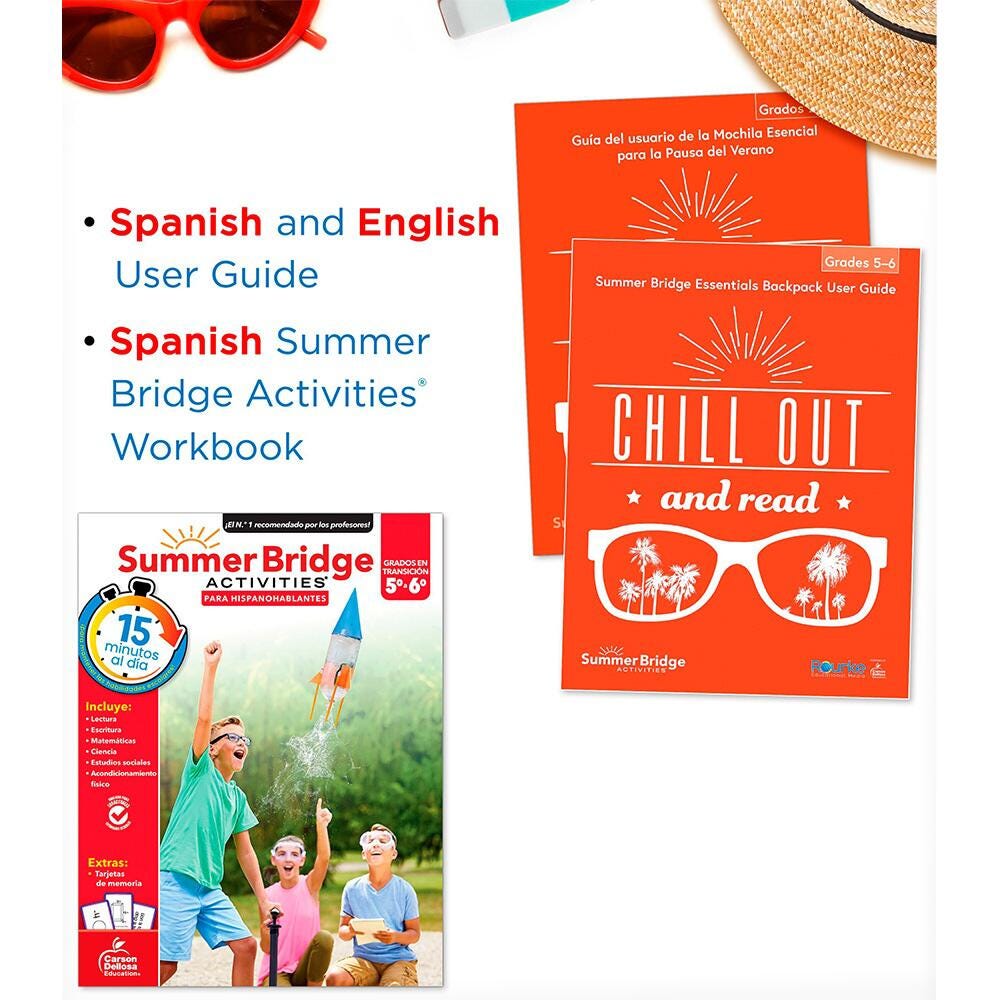 Help prevent summer learning loss and prepare your bilingual or Spanish-speaking child for back-to-school success with engaging activities, exercises, fun games, and more―all in one summer learning bundle! This Spanish Summer Bridge Activities bundle helps fifth graders keep their skills sharp during the summer months to stop the summer slide and prepare for sixth grade. This learning resource bundle includes a Summer Bridge Activities 5-6 Spanish Workbook for kids with flashcards and Spanish instructions and lessons to help Spanish speakers work alongside their child to complete activities in just 15 minutes a day with over 60 days of summer learning activities! The bundle also includes 4 high-interest children's books and Spanish and English user guides to help increase family engagement. With the summer reading books, User Guides, and an award-winning Summer Bridge Activities workbook, Spanish-speaking students practice their English and Spanish language skills while learning basic division, taking on fitness activities, science experiments, going on an epic reading journey, and more to keep the learning going all summer long!