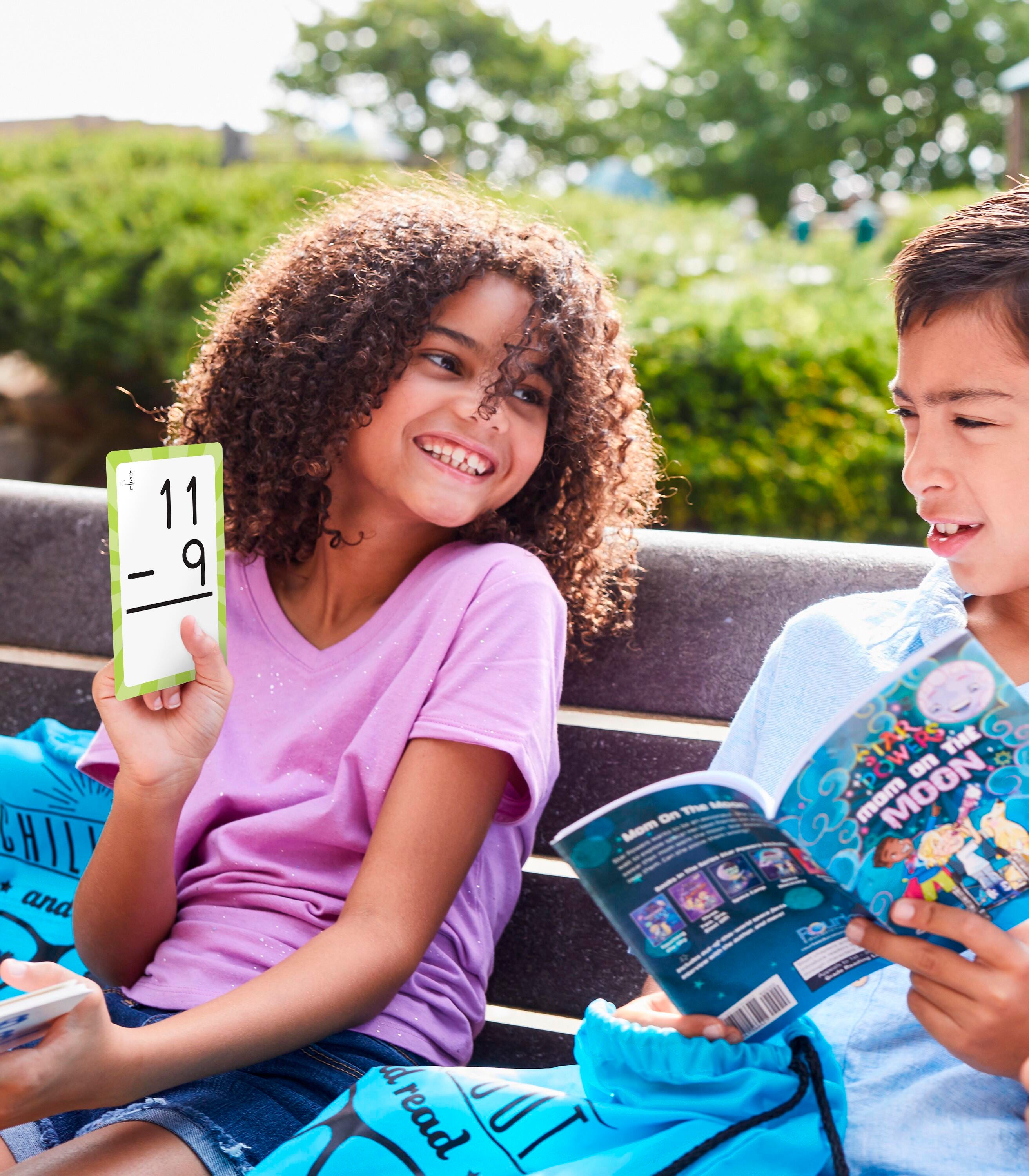 Featuring a Summer Bridge Activities 2nd grade to 3rd grade workbook, math flash cards, and kid's books, this backpack is great for practice and enrichment to keep your child learning all summer long and better prepare for the school year ahead. Practice during long road trips, downtime during the summer, and more.Features
