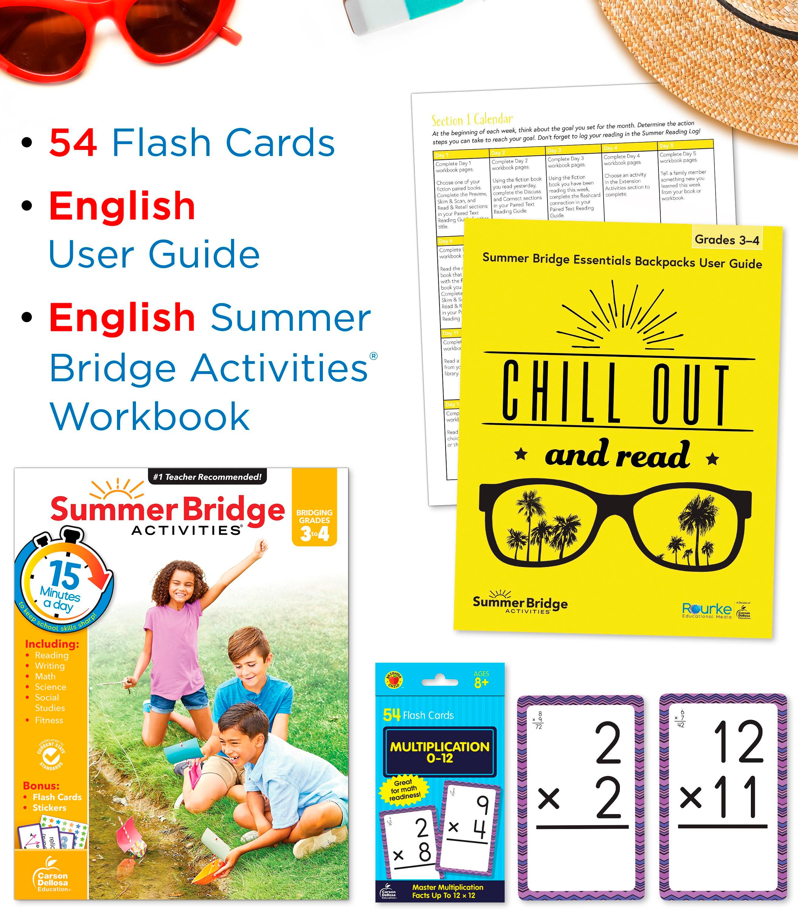 Help prevent summer learning loss and prepare your third grader for back-to-school success in just 15 minutes a day with engaging summer learning activities, children’s books, and fun games—all in one bundle! Featuring a Summer Bridge Activities 3rd grade to 4th grade workbook, math flash cards, and kid's books, this backpack is great for practice and enrichment to keep your child learning all summer long and better prepare for the school year ahead. Practice during long road trips, downtime during the summer, and more.