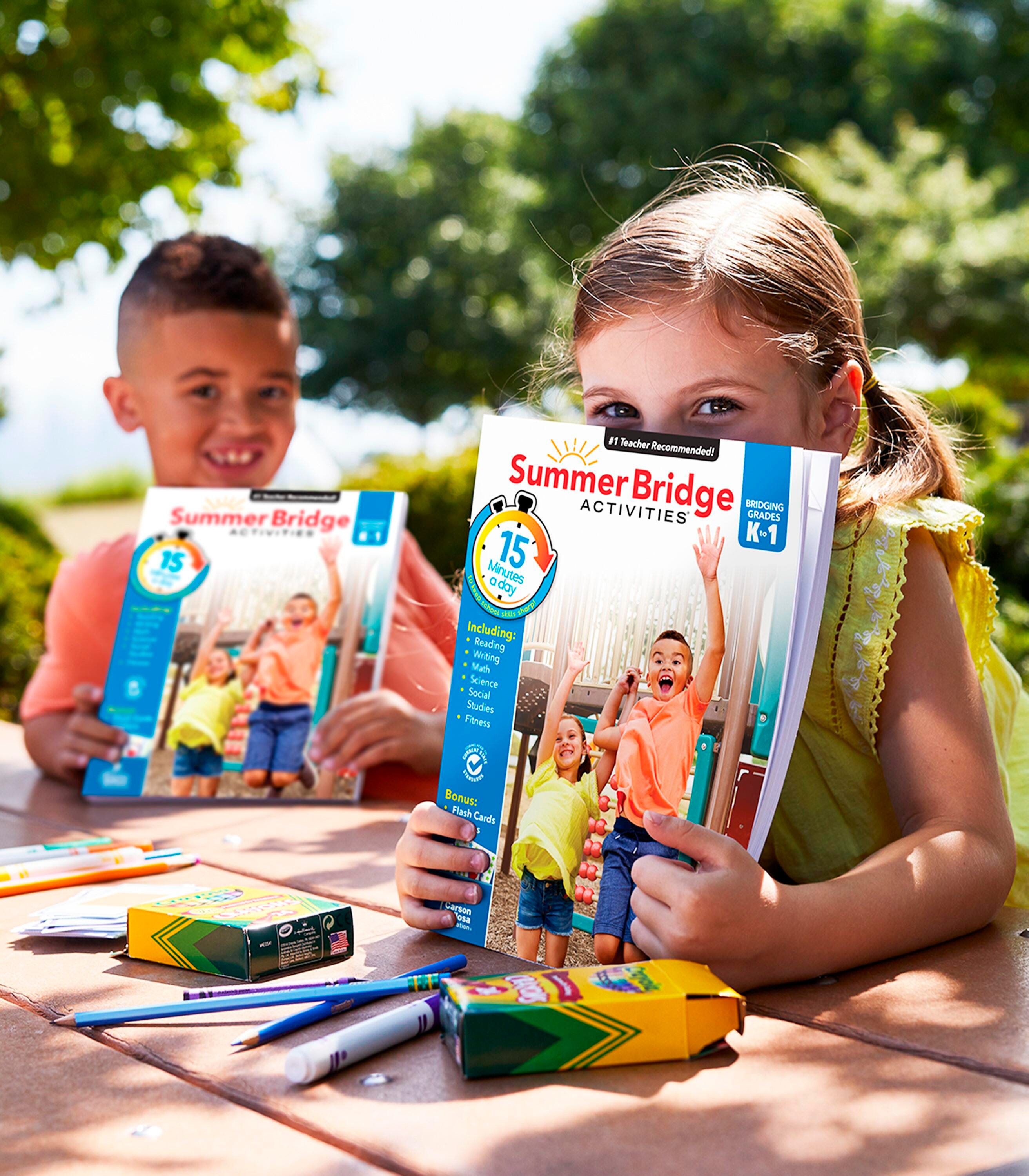 Summer Bridge Activities workbooks feature phonics, math, science, and handwriting activities, and includes flash cards, stickers, and fun fitness activities