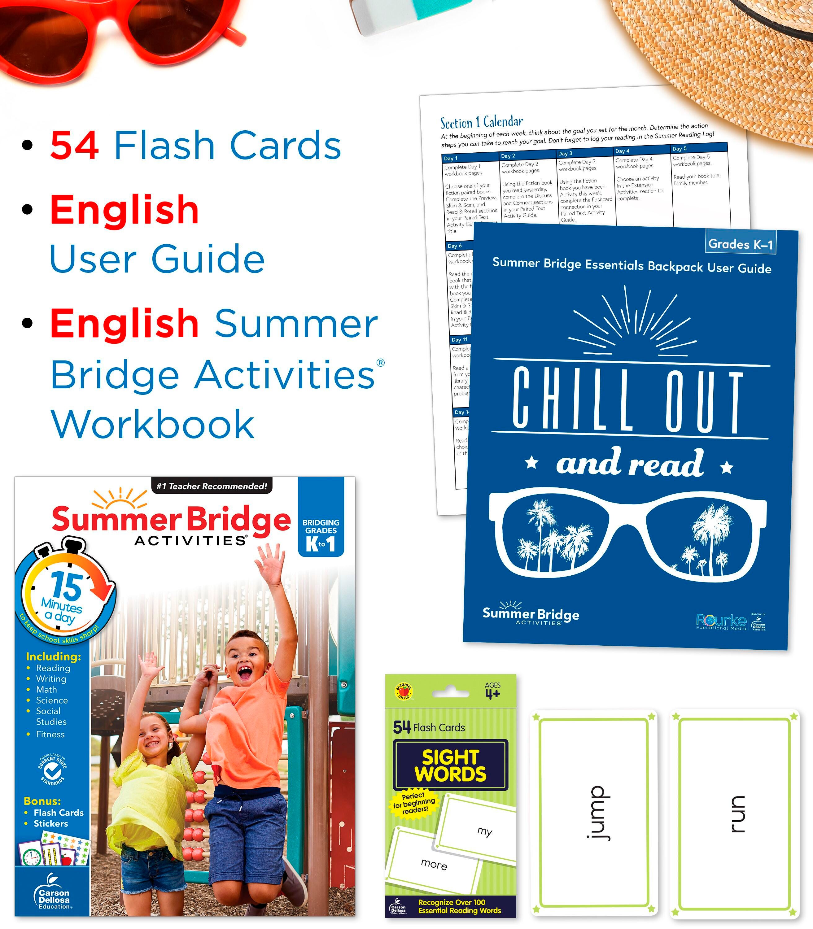 Help prevent summer learning loss and prepare your kindergartener for back-to-school success in just 15 minutes a day with engaging summer learning activities, children’s books, and fun games—all in one bundle! Featuring a Summer Bridge Activities kindergarten to 1st grade workbook, phonics flash cards, and kid's books, this backpack is great for practice and enrichment to keep your child learning all summer long and better prepare for the school year ahead. Practice during long road trips, downtime during the summer, and more.