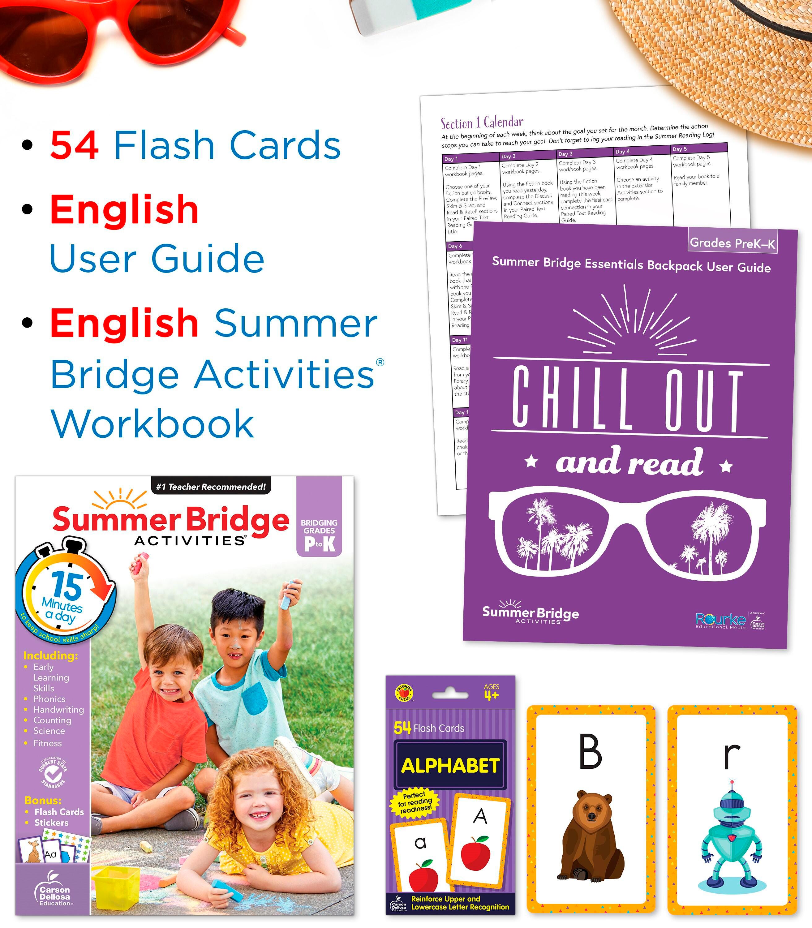 Help prevent summer learning loss and prepare your preschooler for back-to-school success in just 15 minutes a day with engaging summer learning activities, children’s books, and fun games—all in one bundle! Featuring a Summer Bridge Activities preK to Kindergarten workbook, phonics flash cards, and kid's books, this backpack is great for practice and enrichment to keep your child learning all summer long and better prepare for the school year ahead. Practice during long road trips, downtime during the summer, and more.