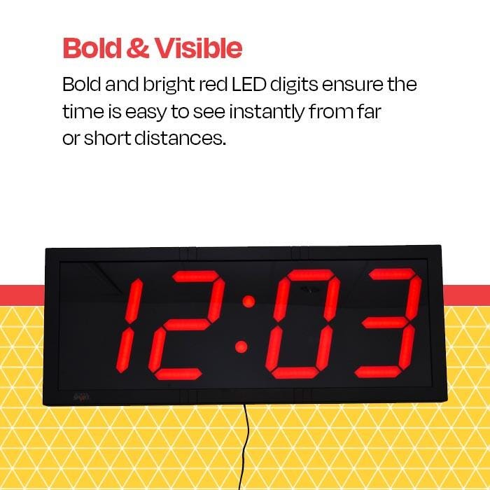 Big and bright red LED digits ensure clock is easy to see instantly from far distances