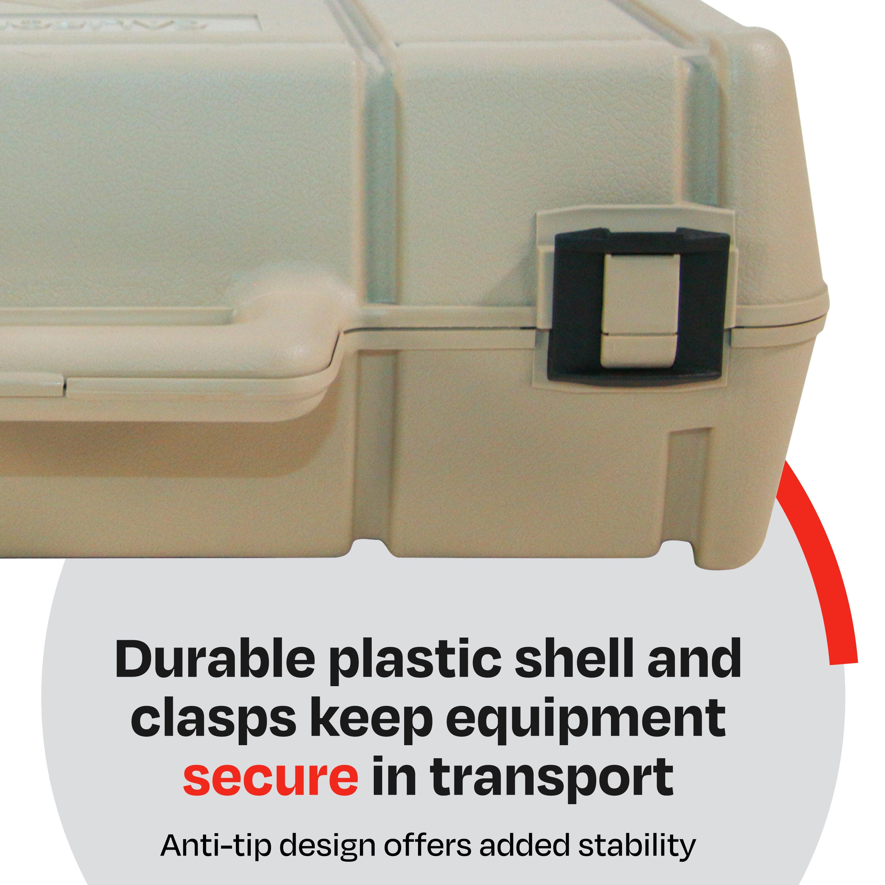 This rugged case is built for classroom and library use to preserve the life of media players, headphones, and headsets. Opposing clasps help prevent accidental openings, and the stable base won't tip over. Lightweight, rugged polypropylene is guaranteed not to split or crack. Designed for the economical transportation and storage of media players, headphones, jackboxes, and listening centers.