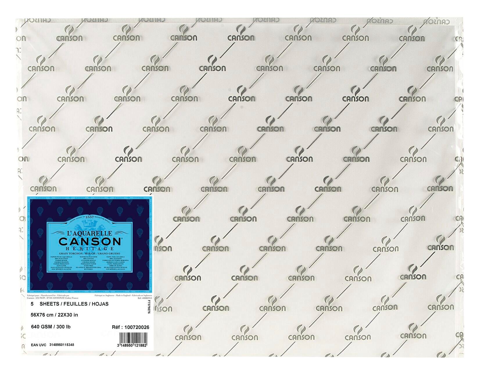 • Canson L'Aquarelle Heritage Rough Grain Watercolor Paper, 22 x 30 Inches, 300 lb, 5 Sheets