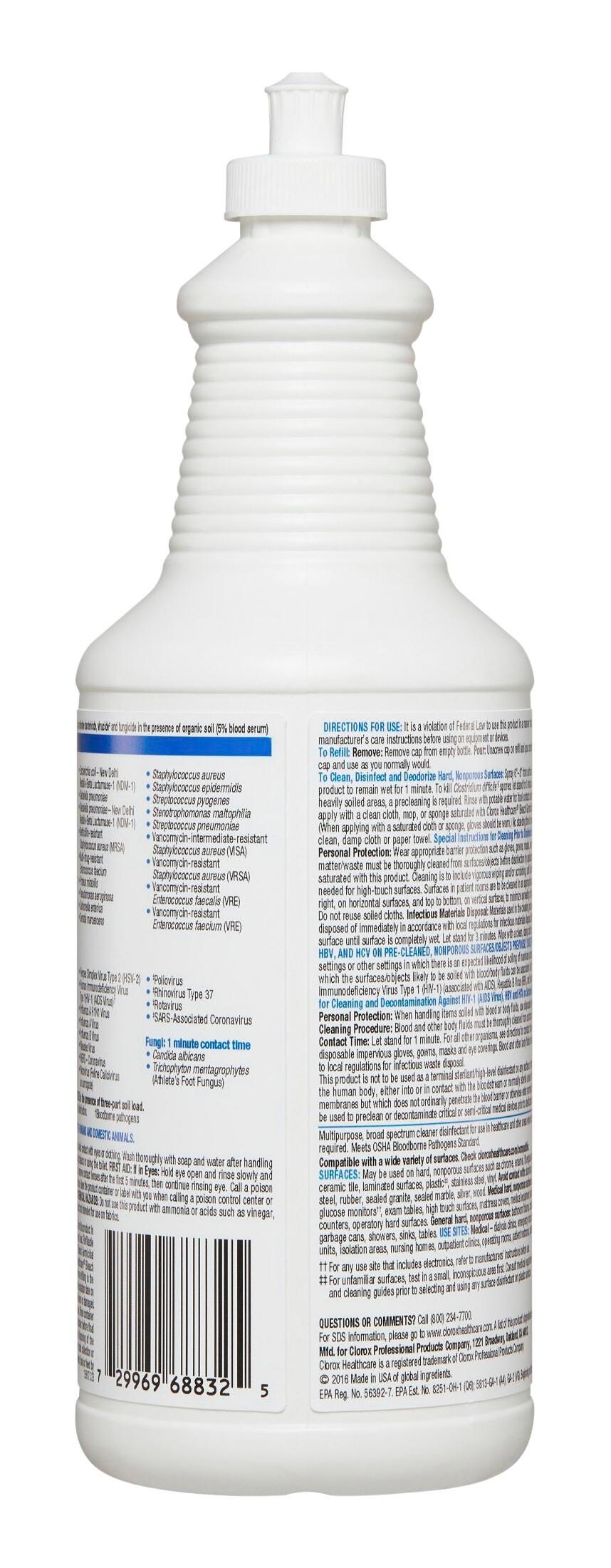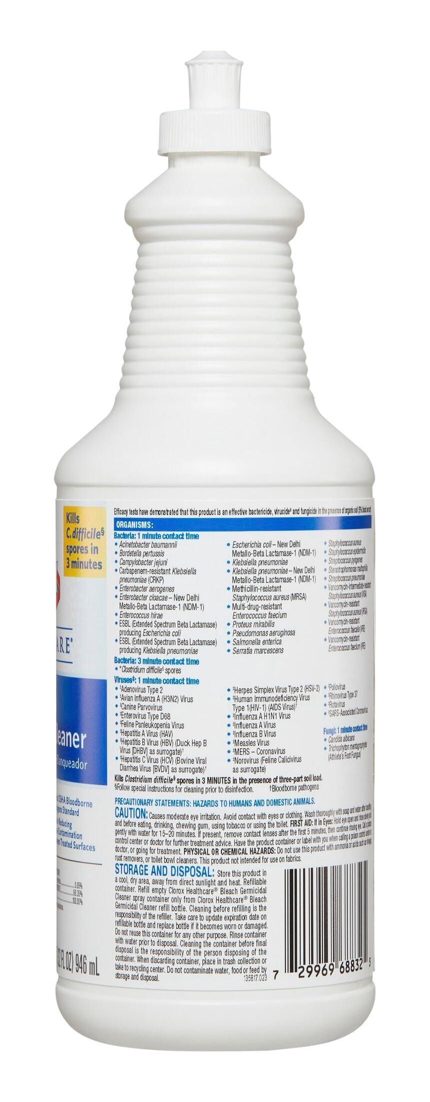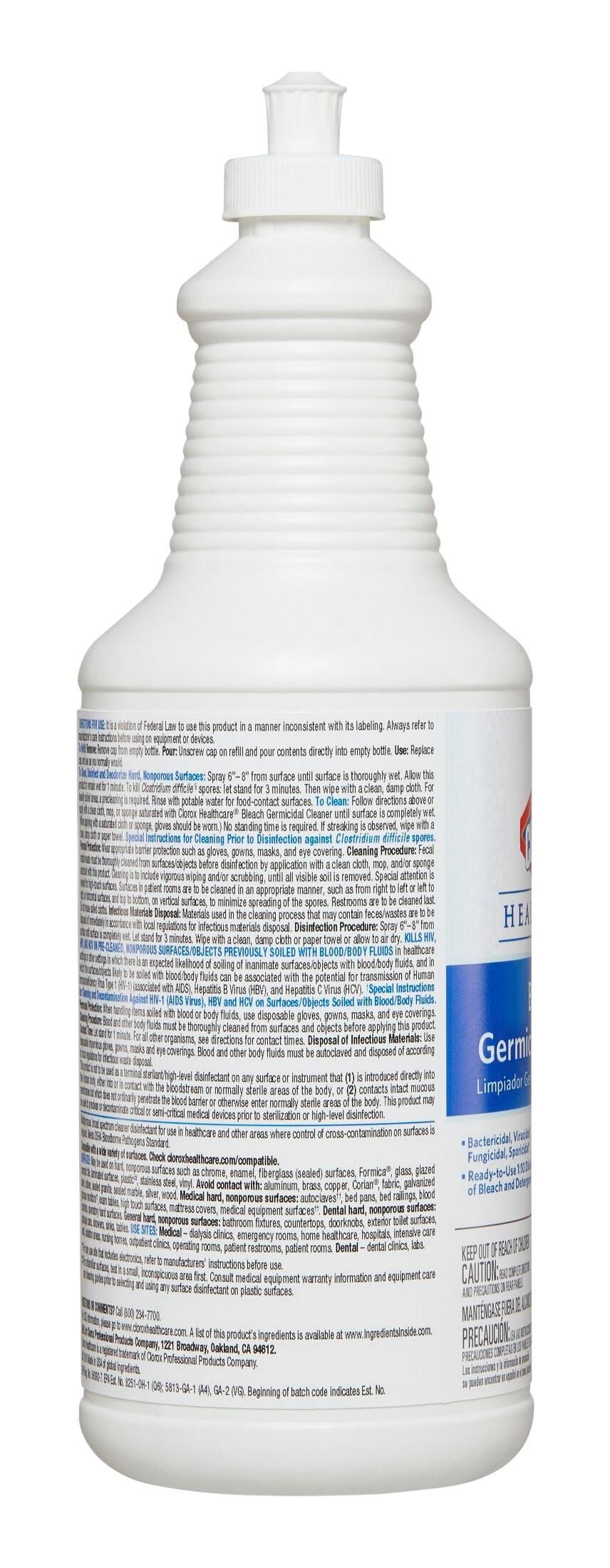 Clorox Healthcare Bleach Germicidal Cleaner, 1 Quart Bottles, Case of 6