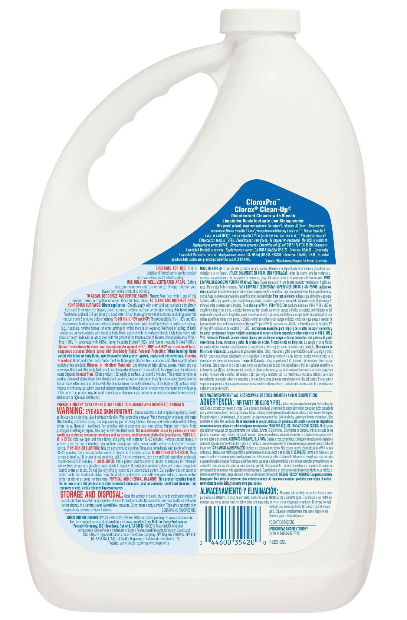 Clorox Clean-up Cleaner Refill With Bleach of 1 gallon capacity is effective against MRSA and is designed to removes tough stains like blood and greasy dirt. This combination of powerful cleaner with stain-fighting ability of Clorox bleach is effective against pseudomonas, salmonella, staph, rhinovirus, hepatitis-A and influenza in 30 seconds. Cleans, deodorizes and disinfects hard nonporous surfaces in hospitals, nursing homes and institutional settings.Features