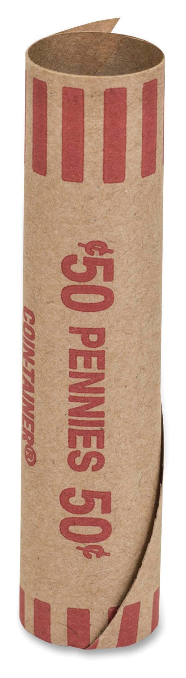 Coin-Tainer Tubular Coin Wrappers are preformed and crimped at one end for easy coin filling. Each wrapper is printed with the type of coins and total amounts on the outside for quick calculations. Heavy-duty wrappers are color-coded to meet Federal Reserve and American Banking Association (ABA) standards. Kraft paper is burst-resistant. Red wrappers for pennies. 1,000 per box.