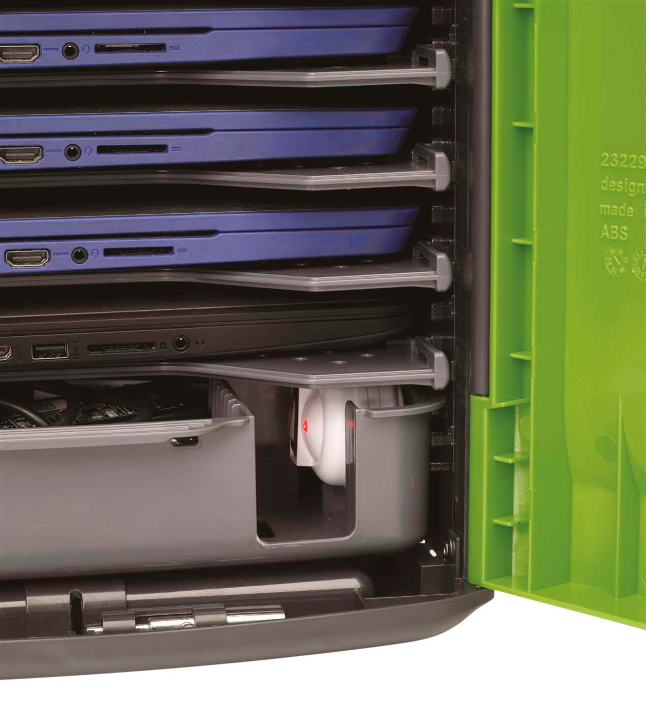 Offers an affordable, flexible, and mobile solution for charging and storing devices used in Pre K to 8th-grade classrooms. Holds iPads, Chromebooks, or a combination of both.