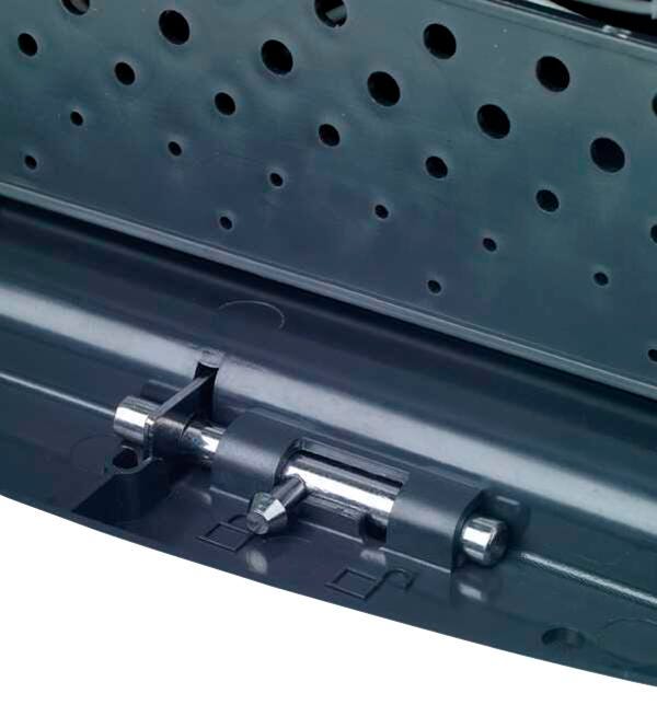 The Premium Tech Tub2 is made from durable, high-impact ABS plastic, and stores and charges up to 6 devices. Ventilation holes throughout the case prevent heat build-up. There are two ergonomic handles on the door and back as well as a flip-up handle on the top. The adjustable shelves accommodate devices with and without cases. To keep cords and adapters tidy, there is an easy-to-use side cable organizer and lower compartment. Cable hooks are on the back to manage the cord during transport. To secure the tub to a surface, there is mounting hardware. Tub has a 3-point lock and comes with 2 sets of keys. Please note, this Tech Tub is not compatible with 8th Generation iPads. For an iPad 8 charging solution, please purchase item# 2087480.