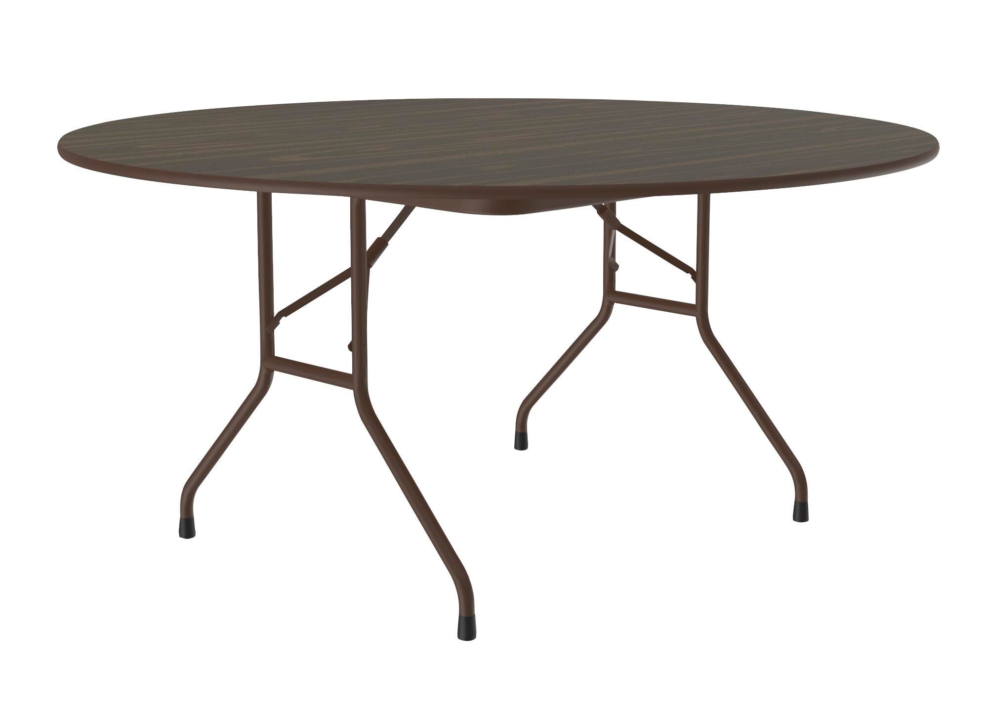 Description Correll Economy Folding Table has a 5/8-inch thick solid core with a melamine top that offers strength and durability. Table has bullnose edge molding, polyethylene T-molding, non-marring floor glides for ease of mobility, and gravity lock-open legs that provide extra protection.Features Mar-proof plastic foot caps and edge molding Includes an automatic lock-open mechanism 1-5/8 inch one piece steel apron 1-inch 18 gauge steel brown pedestal legs