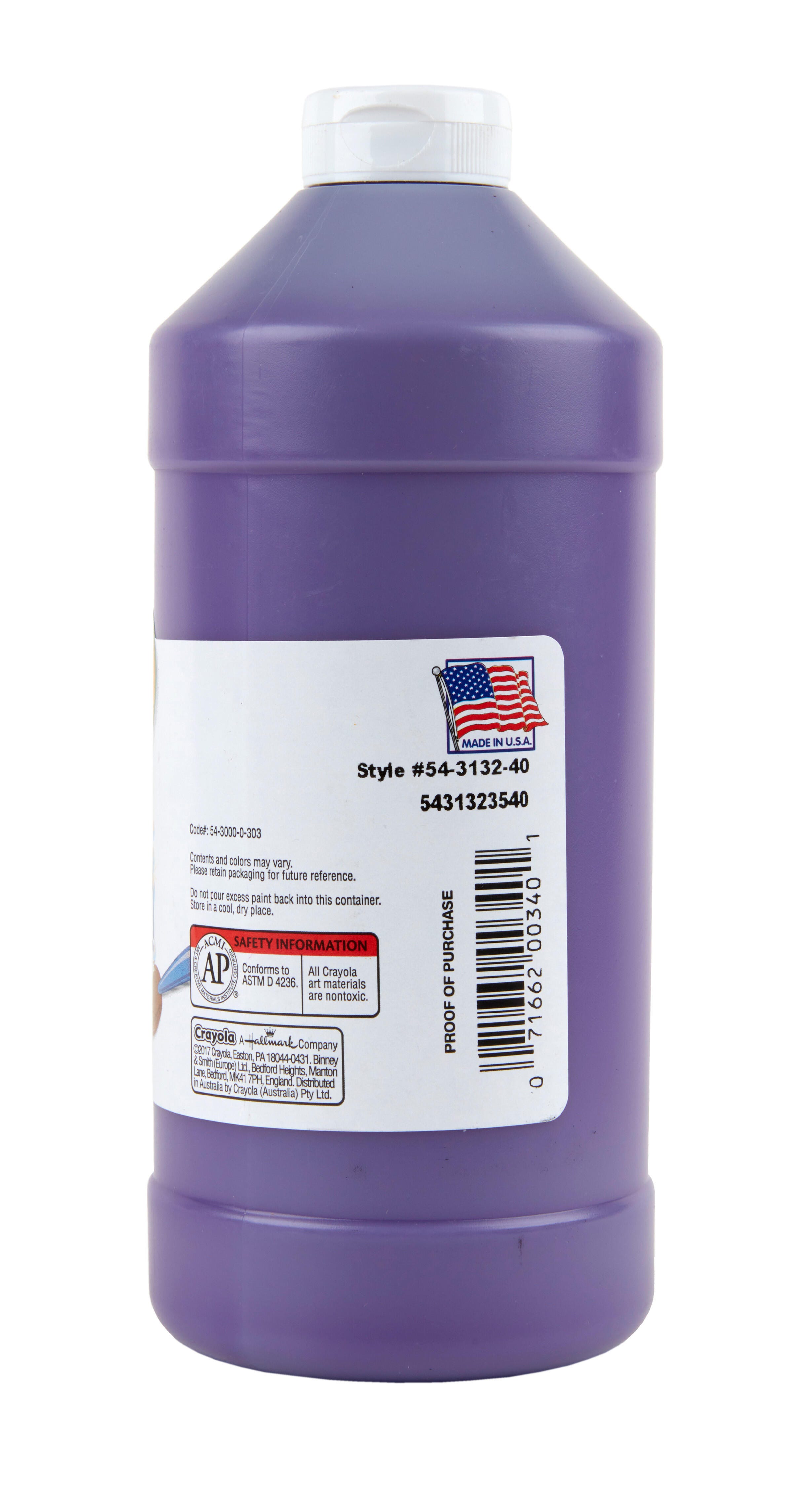 Add a splash of color to art fun anywhere with Crayola Artistia II Washable Tempera Paint. The water-based paint has a creamy consistency that provides good opacity and maximum coverage over newspaper, cardboard, papier mache, traditional paper, and beyond. This rich violet paint can be used on almost any surface, providing a versatile craft solution for class projects, at-home creativity, and arts and crafts activities. The versatile paint is also great for teaching color theory, color mixing, and more.Features