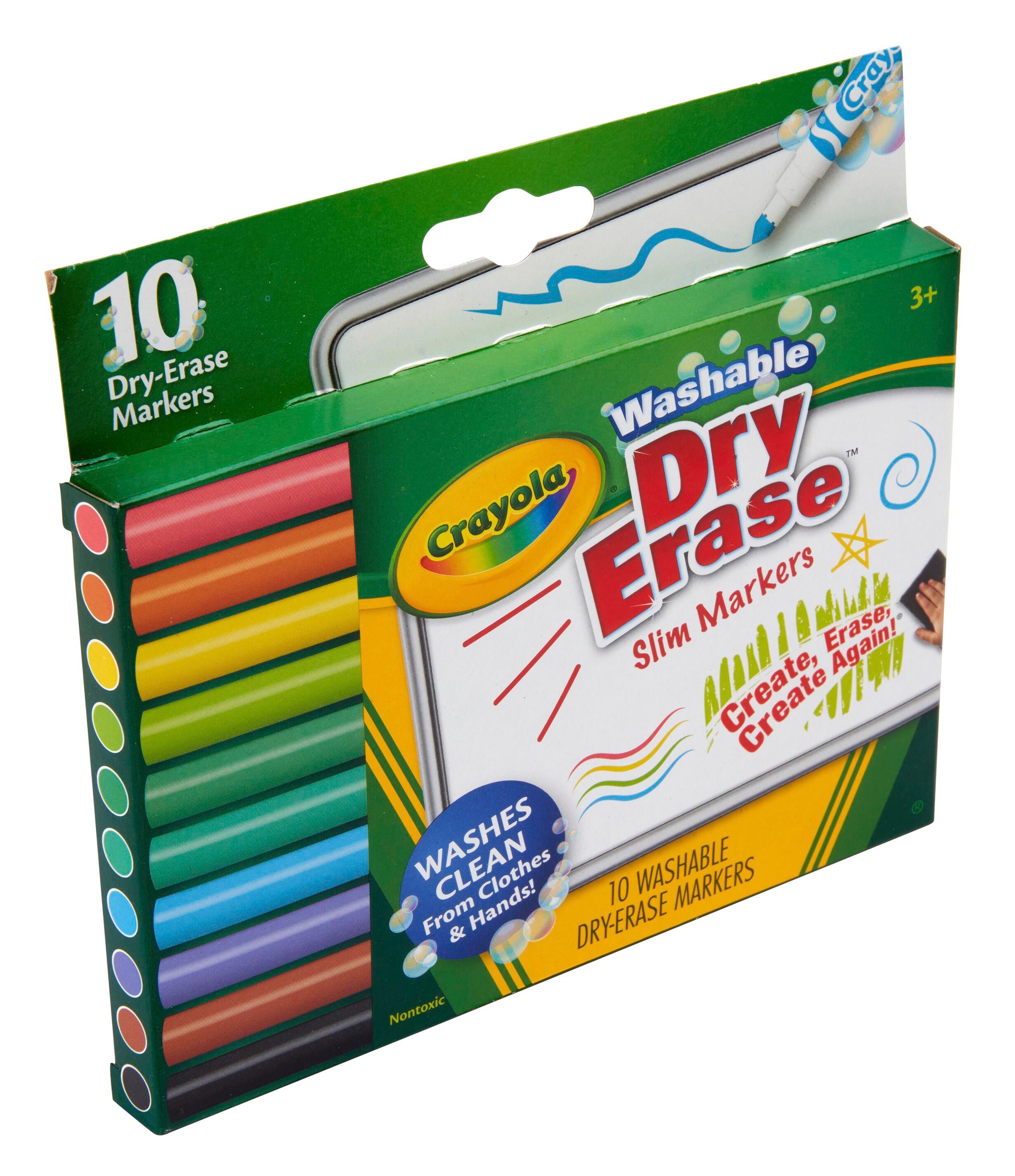 Crayola Dry Erase Slim Washable Markers, Assorted Colors, Set of 10