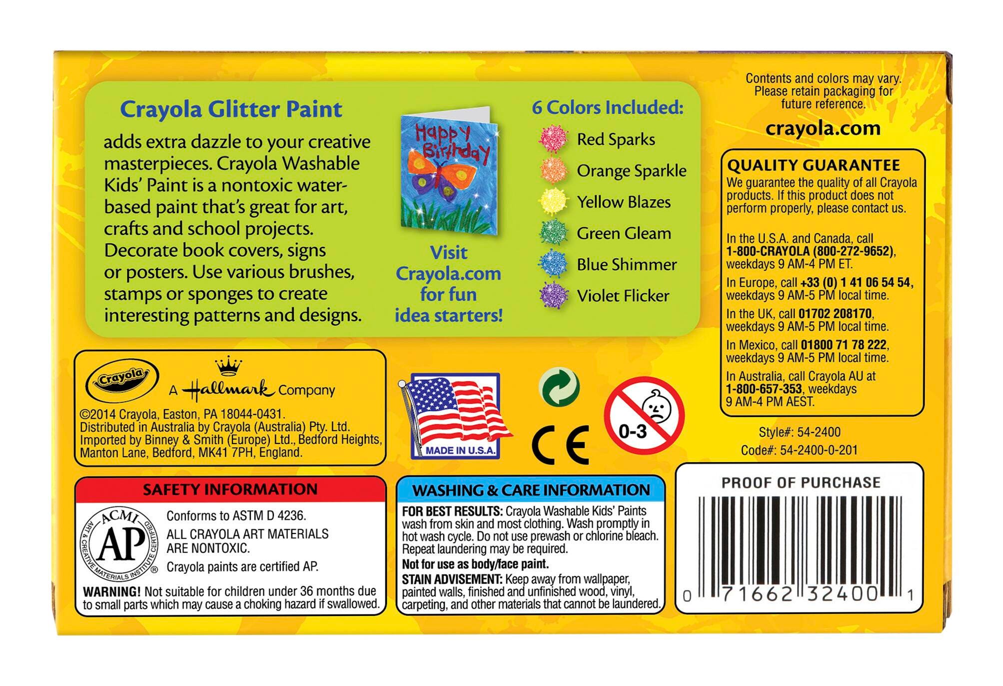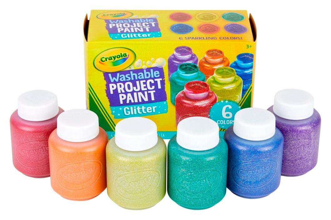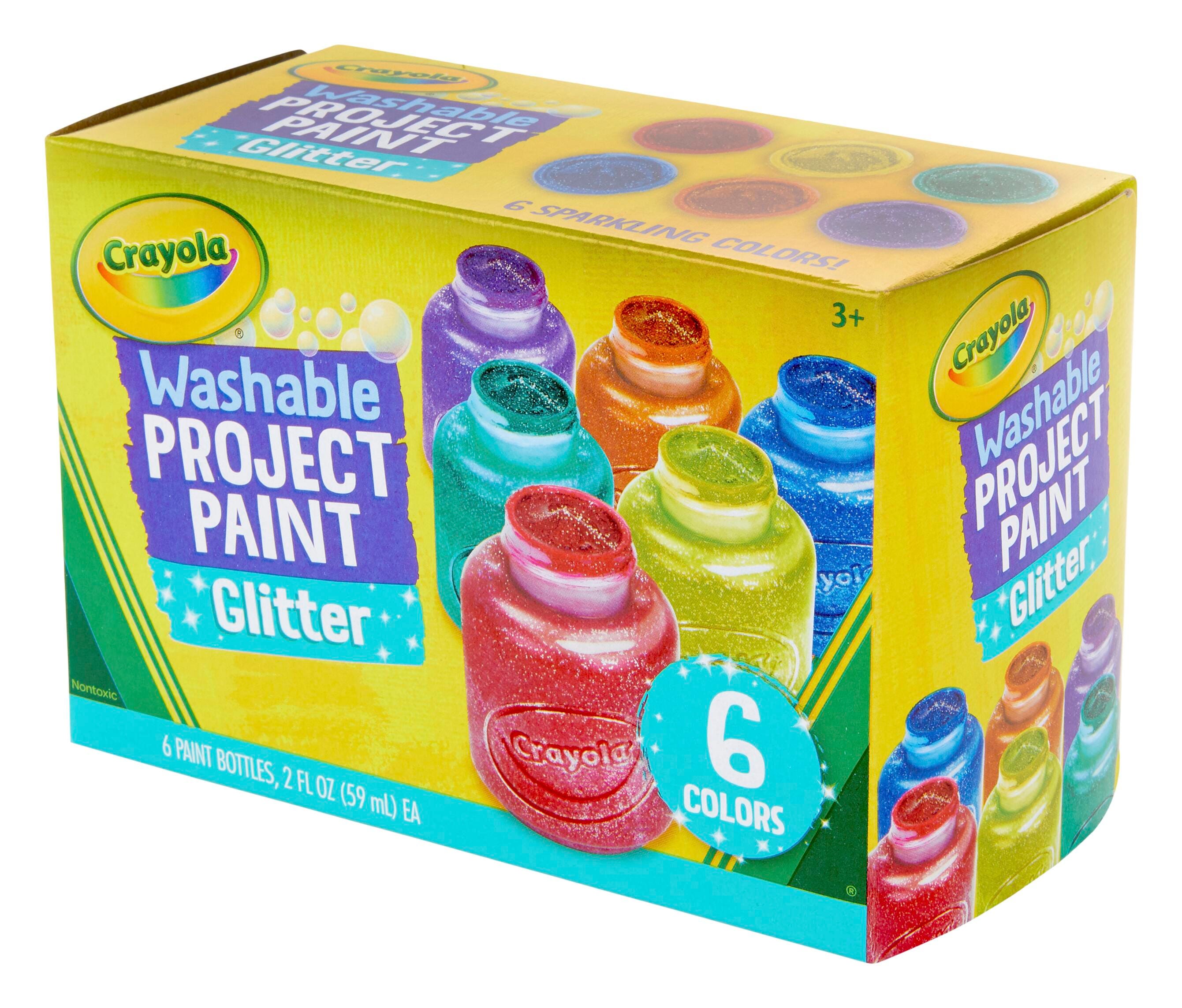 Crayola Washable Project Paint, 2 Ounce Bottles, Assorted Glitter Colors, Set of 6
