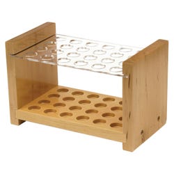 - Has 24 holes in a wooden stand to hold the handles of brushes