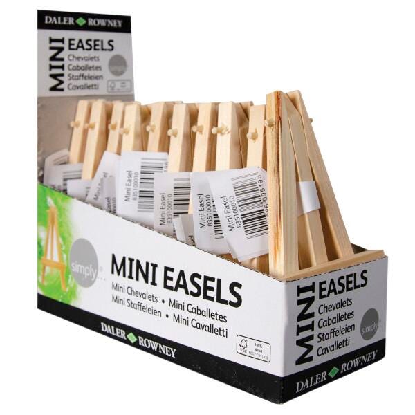 Display miniature works of art with Simply Mini Easels. Each easel is constructed from real wood and features a fold-out back leg to stand it up for display. Easels measure approximately 5 inches tall. The perfect accessory for Simply Mini Canvases, 1582835.