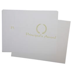 Achieve It! Gold Foil Embossed Principal's Award measuring 11 x 8-1/2 inches is printed on premium 80 lb smooth paper. Compatable with copier, laser, and inkjet printers. Elegant award is sold as 25 per pack.Features