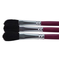 Sax oval wash ox hair paint brushes in a 1/2 inch wide size are durable, high-quality, and give you better control. The art brushes provide a soft touch and large capacity for applying bigger areas of paint. Crafted with ox hair, each art brush features short lacquered handles with seamless aluminum ferrules. The short handle design allows for better precision and comfort whether working on a tabletop or easel. Our 3-pack of oval brushes is perfect for all of your crafting needs in the class or art studio. Use the paint set for watercolor, inks, and dyes.Features