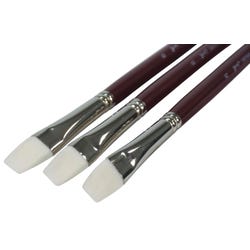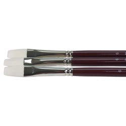 Sax Optimum White Synthetic Taklon Paint Brushes with Long Handles, Flat Type, Size 6, Set of 3