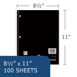 Designed for everyday note-taking, this college-ruled notebook offers 100 sheets, providing ample space for detailed notes, lists, or brainstorming sessions. Each page is lined with a left-hand margin for easy organization and cleaner formatting. The durable wire binding ensures smooth page turns and keeps your notes securely intact. Measuring 11 x 8 1/2 inches, this notebook fits perfectly in backpacks, briefcases, or tote bags. With assorted bright cover colors, it's easy to color-code subjects or tasks while adding a touch of personality to your supplies.Features