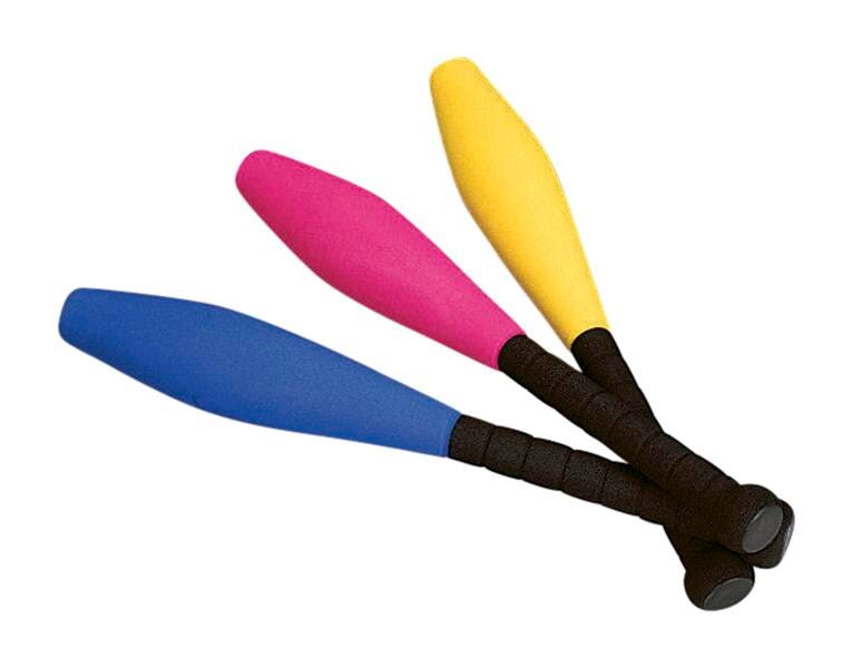 Juggling Clubs are a must have for any juggler, and this set of 3 brightly colored JuggleBug starter clubs provide an excellent opportunity to hone your skill. Made of neoprene foam with textured handles. 18 inches long.Features