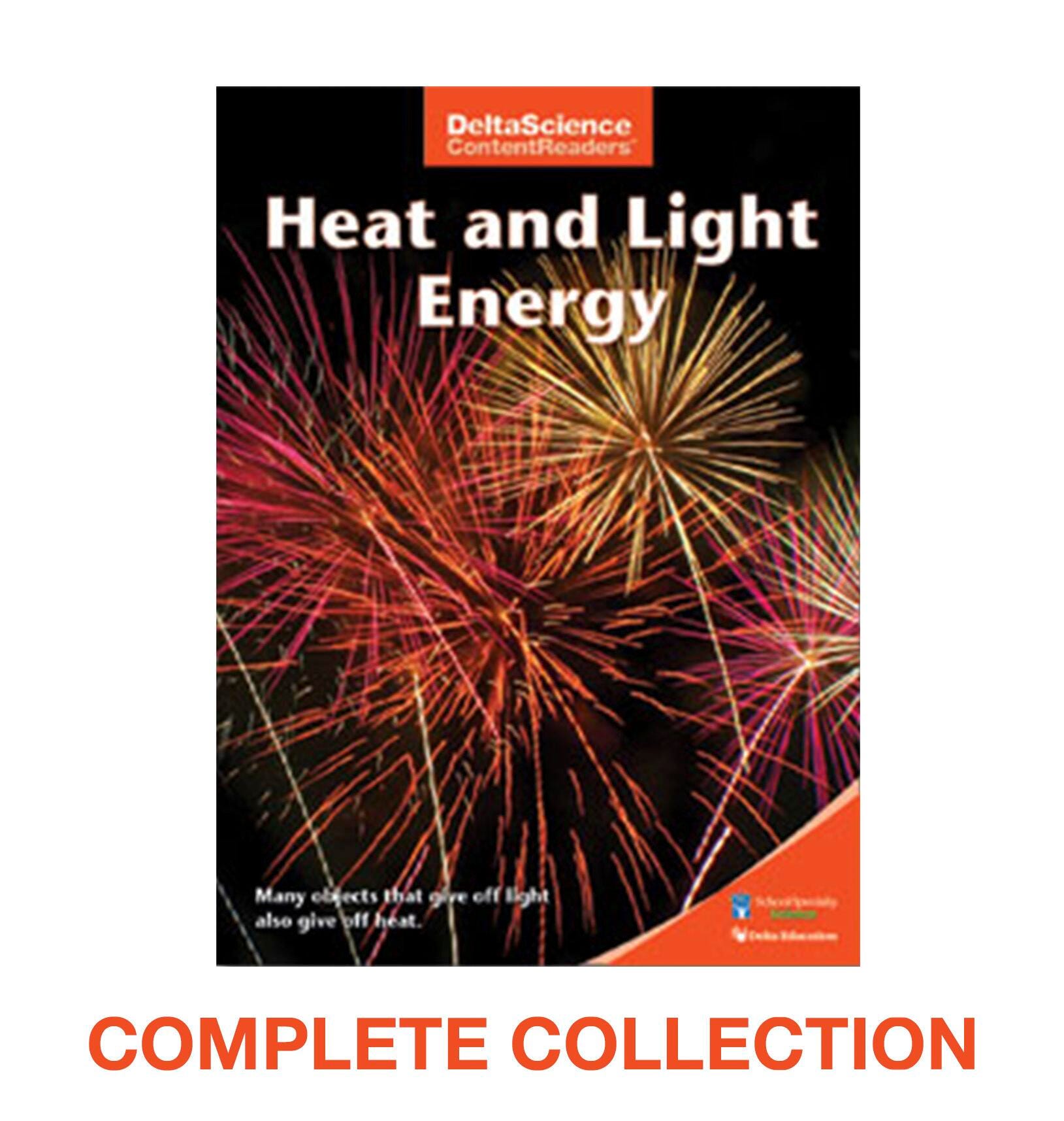 Delta Science Content Readers are 24-page nonfiction student books with informative, engaging text, full-color photos, and illustrations. Red and Purple Editions both provide the same science content but at two different reading levels. Each offers the same key science content, science vocabulary as well as science and literacy support features. Both sets of the Delta Science Content Readers present key science content and vocabulary found on state tests and support key reading skills and strategies for reading informational text. They extend and support hands-on activity experiences and content while promoting scientific inquiry. Also included are a comprehensive teacher’s guide and a pack of Skillbuilders with literacy-reinforcing, consumable practice sheets. The Heat and Light Energy Collection explores what heat and light are. Lessons look at thermal energy and how it moves as well as light energy and its relationship to objects. Students will learn how the eye works and how light is used in technology through lenses, lasers and fiber optics. The Red books have a Lexile® measure of 670 and the Purple books have a measure of 940.