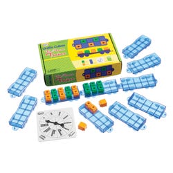 These manipulatives help kids develop a concrete understanding of the concept of ten by connecting train cars, each holding 10 unifix cubes. By filling the spaces and connecting the cars, children can see and feel the transition from 10 to 11, 20 to 21, etc. Designed for grades PreK - 2. Set includes 10 cars and 20 cubes, along with ten-frame spinner and teacher's guide.Features
