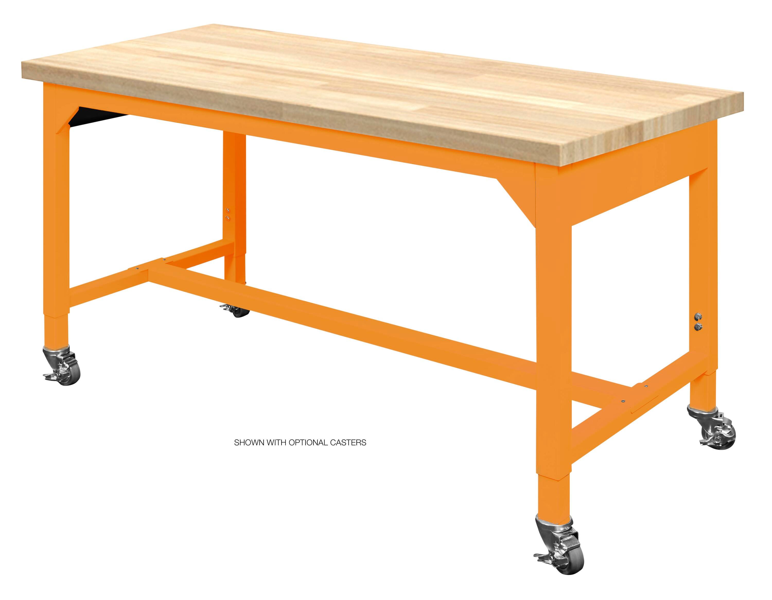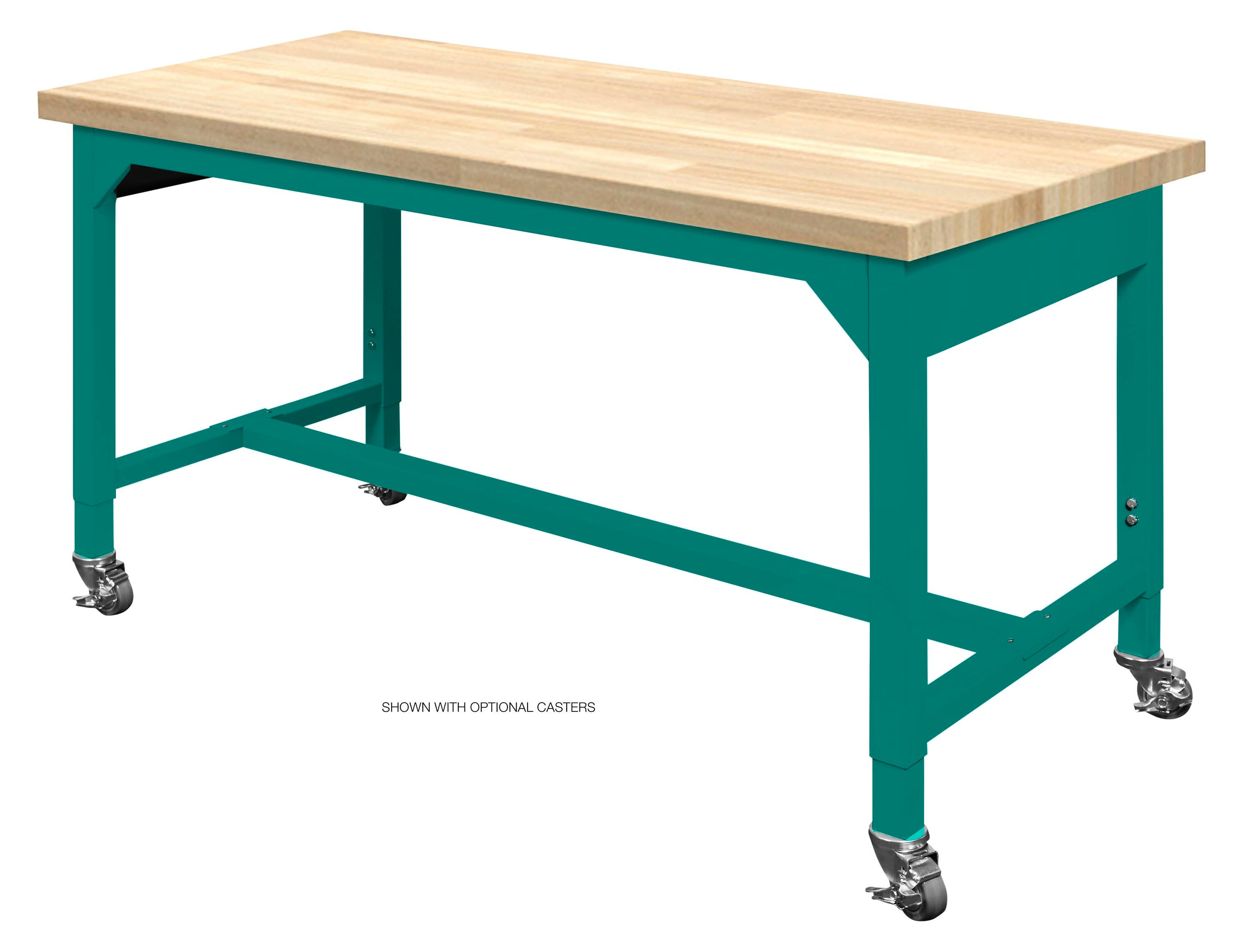 The Diversified Spaces Fab-Lab Workbench with a Maple butcher block top is a great choice for your science classrooms! The legs are constructed of 2 x 2-inch square steel outer tubes welded together with upper and lower cross braces, and 1-3/4 x 1-3/4 inch square steel 14-gauge inner tubes with riv-nuts spaced 1-inch on-center to provide adjustable heights from 29 to 37 inches with glides and a 1 inch thick top. An additional 14-gauge stretcher bar provides additional rigidity to the table frame; it can be installed in the front, middle, or back of the leg frame. The workbench is equipped with adjustable glides for precise leveling.