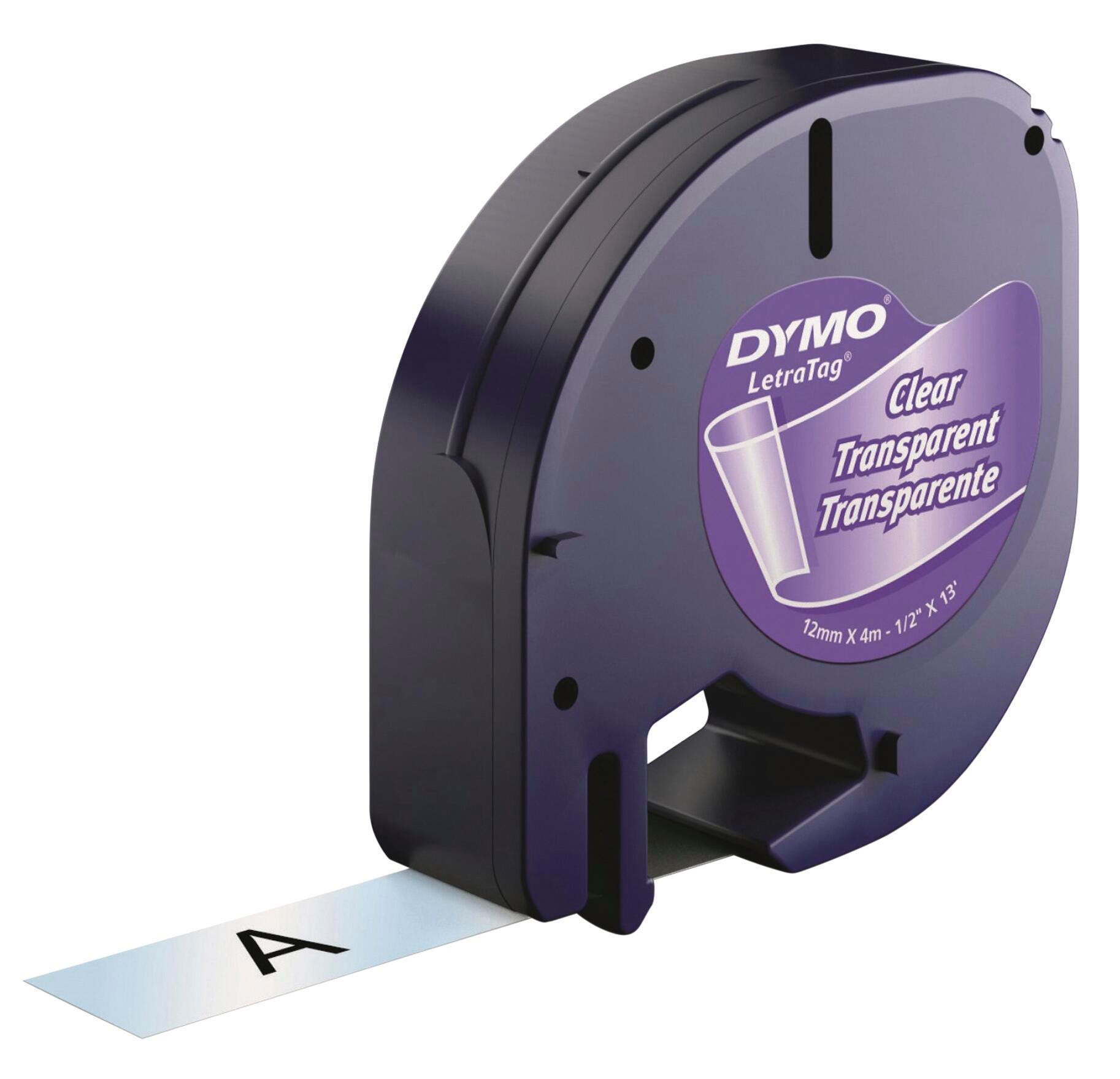Label maker tape offers flexible performance for indoor and light uses. Self-adhesive plastic tape features easy-peel split-back design. Special backing is split down the middle to make separation of tape backing a snap for fast and easy label application. Clear tape is designed for use with Dymo LetraTag Plus LT-100T and LetraTag Plus LT-100H.