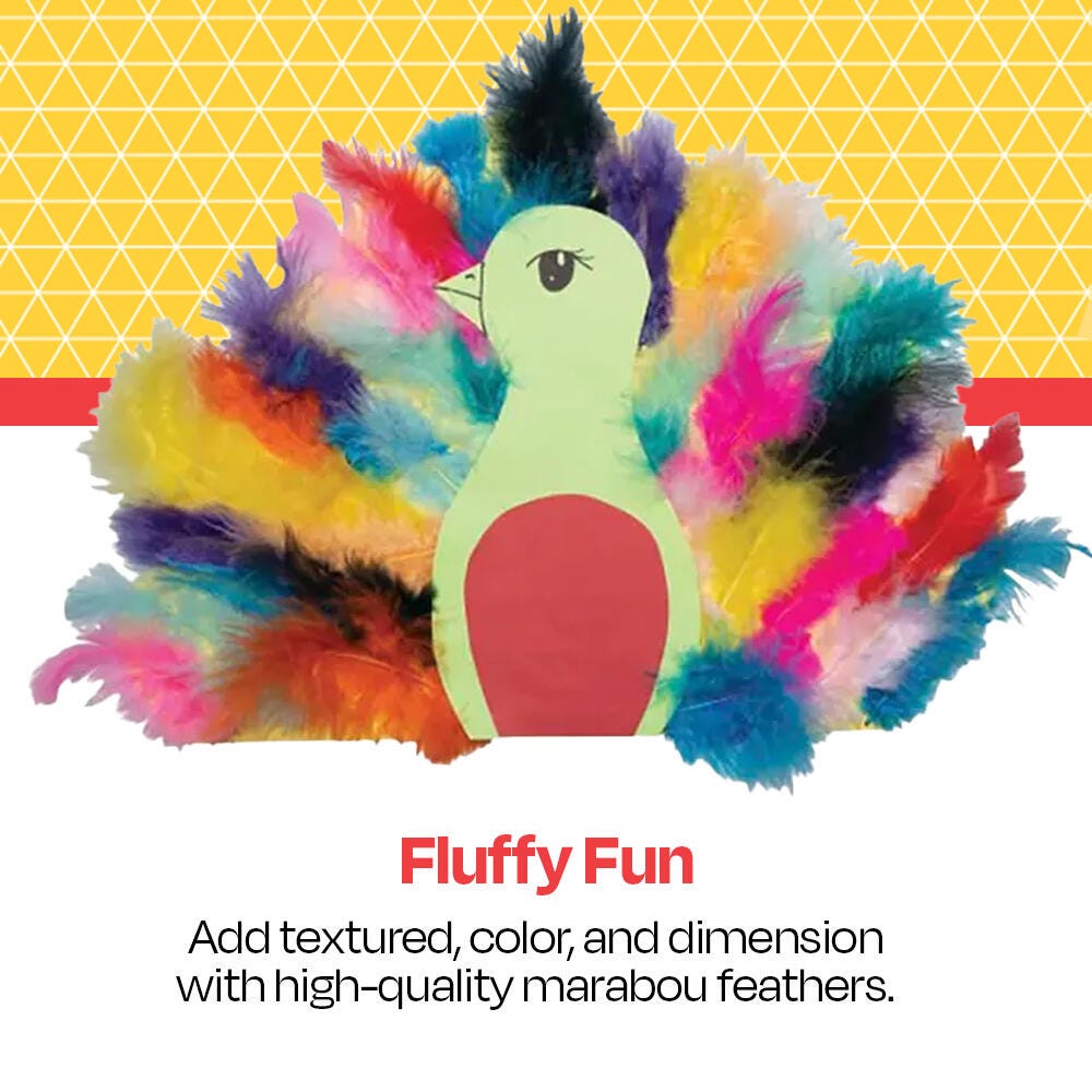 These Crafting Feather Fluffs from School Smart are a great way to add color and texture to your arts and crafts projects. This bulk pack contains soft and fluffy marabou feathers in an assortment of fun colors. Use the bulk feathers pack to complete decorations, costumes, jewelry, sculptures, and creative masterpieces on paper.