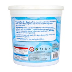 Crayola Air-Dry Clay lets children mold fun shapes and imaginative creations with ease. The user-friendly modeling material can be reused or air-dried overnight to preserve your creation—so no baking is ever required. This modeling clay alternative is smoother, finer, and less sticky than traditional clay, perfect for children and group activities. The clay can even be softened with water if needed, allowing children to enjoy hours of fun. Once dried, users can decorate the finished creation with tempera, acrylic, or watercolor paints.Features