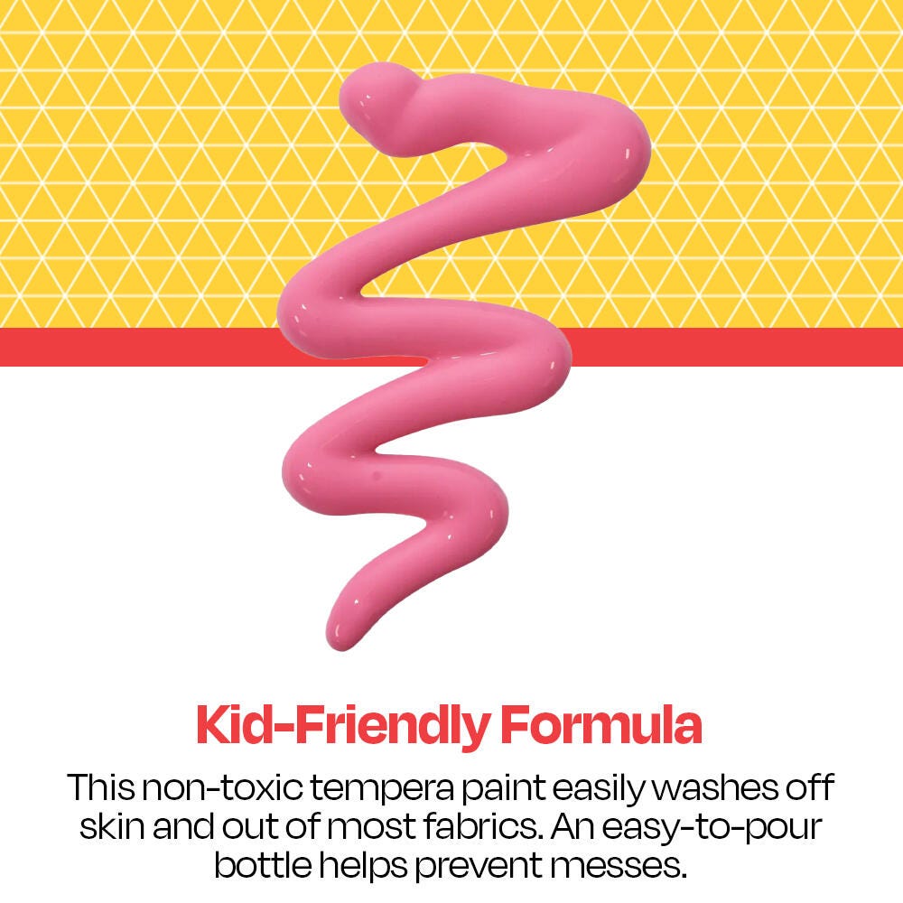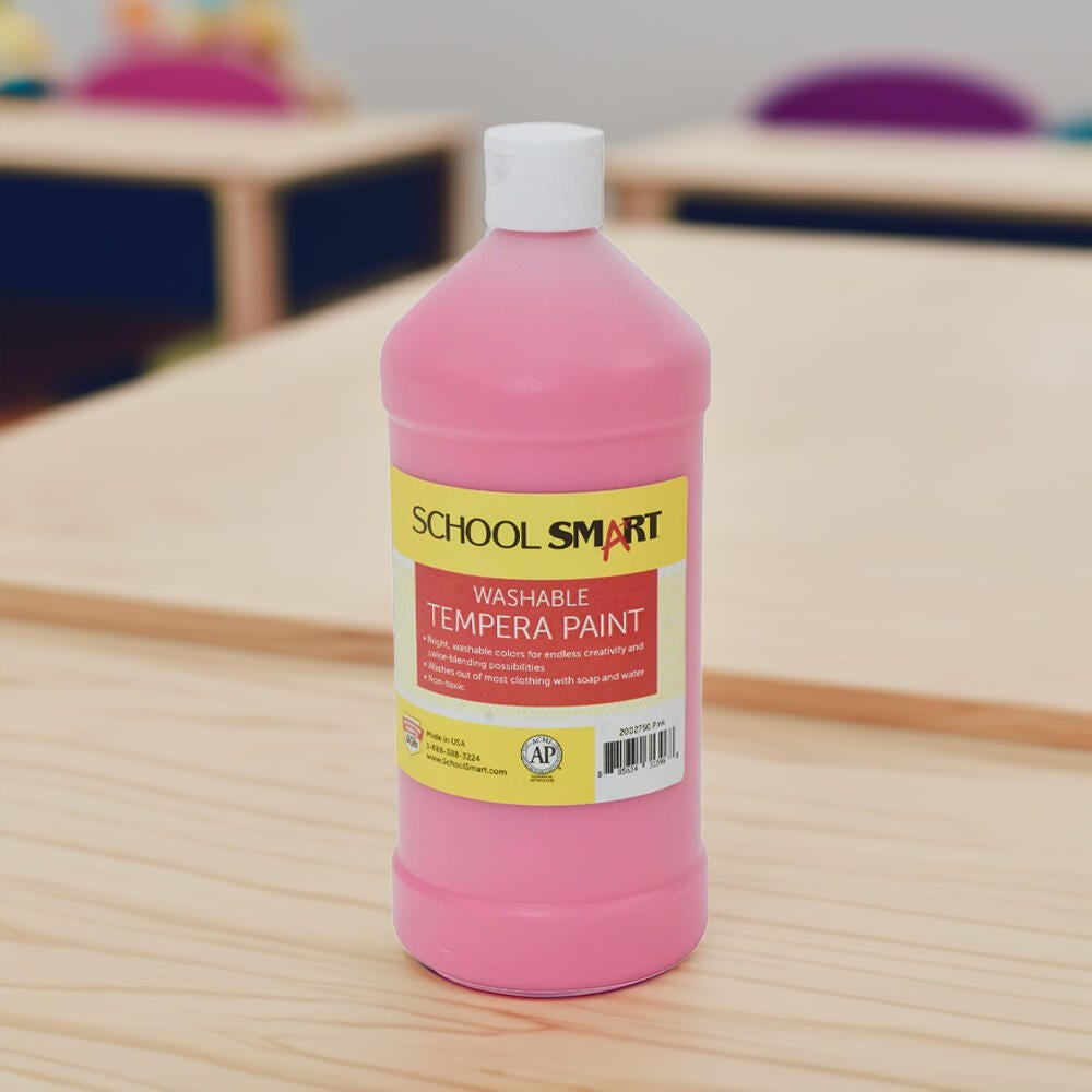 The School Smart washable tempera paint comes in a pink color. This bottle of pink tempera paint is great for classrooms, schools, art classes, and after school programs. The brilliant and rich opaque paint color offers students endless creativity and color blending possibilities. Our non-toxic tempera paint cleans up easily with soap and water and won't chip, flake, or crack when dry.