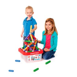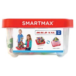 Smartmax Build XXL Set is the magnetic discovery concept manipulative that enables children to experience magnetism and construction. Even young builders can create structures with this colorful combination of long bars, short bars and 1.8 inch diameter metal balls. The 70-piece set with storage bin includes a colorfully-illustrated guide. For a sturdy base, build on the top or bottom of the storage bin. Ages 12 months and up.Features
