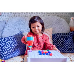 Design & Drill® allows children to create their very own designs, or follow the included patterns to make specific pictures for a more guided play experience. Just snap any one of the drill bits into the power drill or screwdriver, grab a handful of big bolts, and power up the creative fun! Perfect for playrooms, care centers, preschools, or any early childhood setting. Includes everything you need to design and drill your way to more engaging play. Requires 3 AA batteries (not included).Features