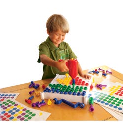- All durable children's construction play pieces can also double in teaching colors, ordinal position, spatial awareness, and more as they build designs onto board