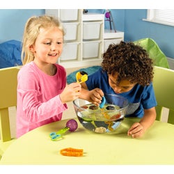Learning Resources presents four of its finest tools conveniently packaged together for more fine motor fun! Help young ones develop fine motor skills and strengthen hand and finger muscles needed for writing with these colorful tools made for function and fun. From squeezing to scooping to pinching, stronger fingers start with these fun tools. Largest tool, the Twisty Dropper, measures 6 inches. Ages 3 and above.Features