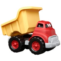 Need help hauling a big load while helping save the planet? The sturdy Green Toys Dump Truck is ready to get working. Made with 100 percent recycled plastic, this award-winning toy truck has no metal axles and a workable dumper that encourages motor skill development. Everything Green Toys Inc. does--from using raw materials to running its California-based manufacturing processes-is geared toward one purpose: making products that are good for the earth and safe and fun for little ones. This durable, eco-friendly rig is both safe and stylish, with no metal axels and a workable purple dumper. No BPA, phthalates, PVC, or external coatings, but loads of Good Green Fun! Measures 10 L x 7-1/2 W x 6-3/4 H inches. Appropriate for ages 12 months and up.Features