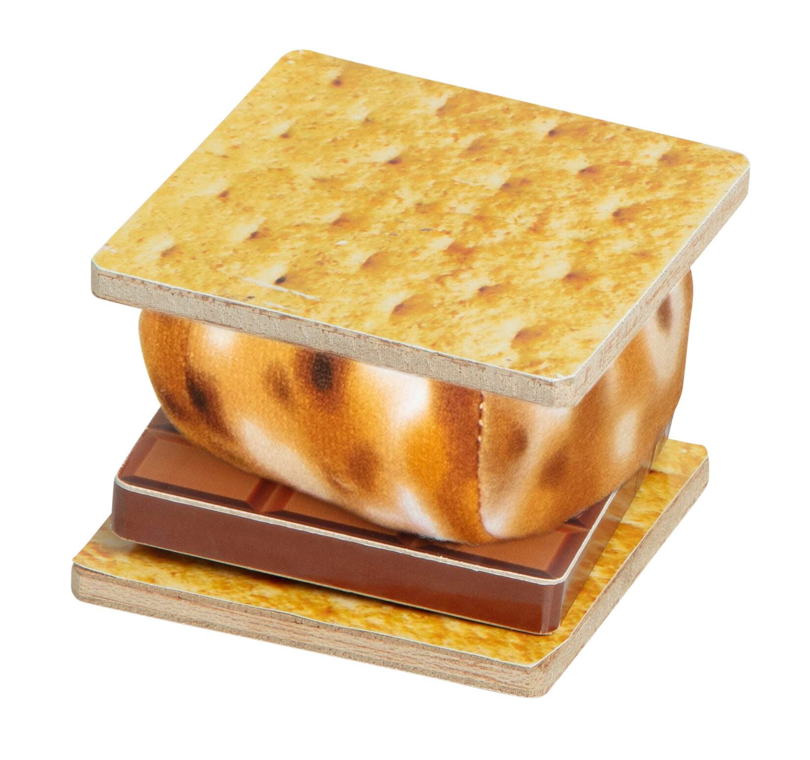 Includes:2 Reversible Marshmallows in a Pouch 2 Wooden Chocolate Pieces in a Box 4 Wooden Graham Crackers in a Box