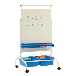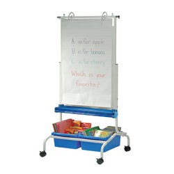 The Deluxe Chart Stand can hang both chart paper and pocket charts; it also allows the user the ability to adjust the height upon assembly. This double sided magnetic dry-erase stand is a valuable tool for group and independent activities. Frame measures 26 W x 25-3/4 D x 50 to 65 H inches. Magnetic dry erase boards measures 24 W x 33 H inches. Pocket chart not included. Includes a lifetime frame warranty, a lifetime tub warranty and a 5 year warranty on whiteboard.Features