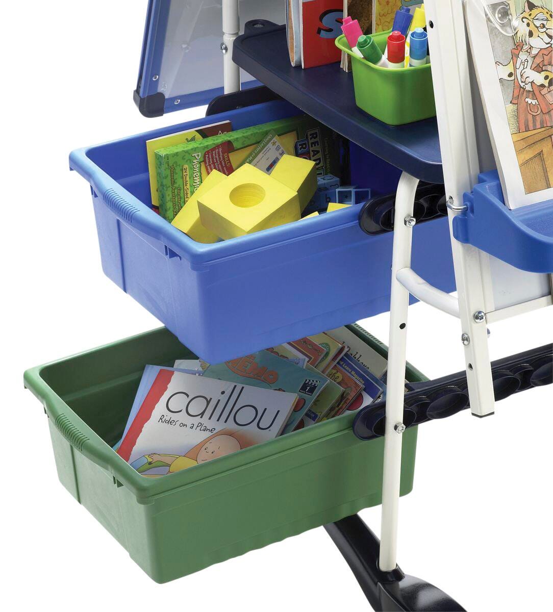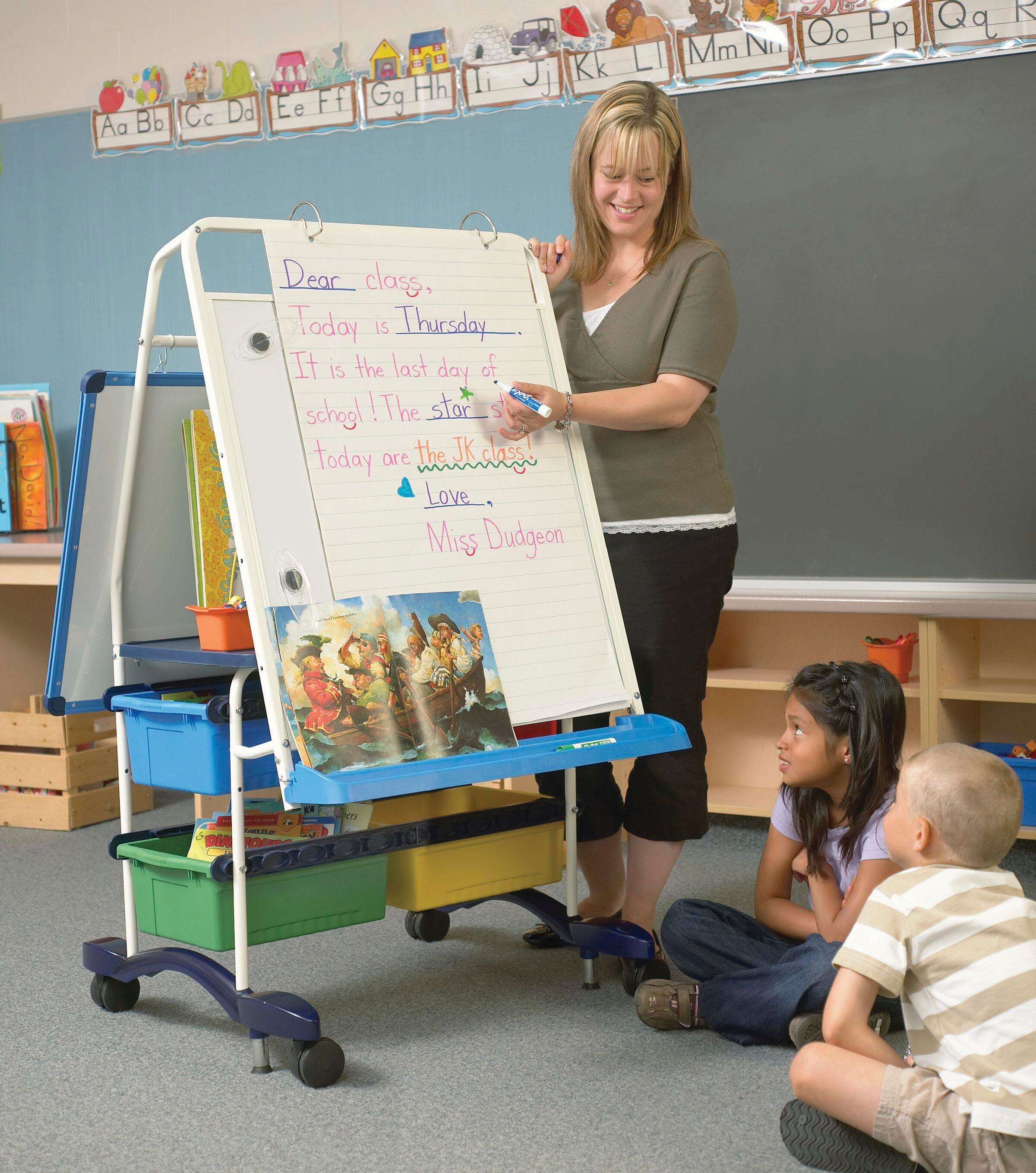 The award-winning Royal® Reading Writing Center's unique features help you teach more efficiently while engaging your students. This easel is an essential teaching tool for all primary and junior classes. It combines a chart stand, storage for books and materials, dry-erase surfaces, and a book ledge for storytime. Copernicus Royal Reading/Writing Center comes with a Premium Tub Pack upgrade (4 stubby and 2 open tubs).